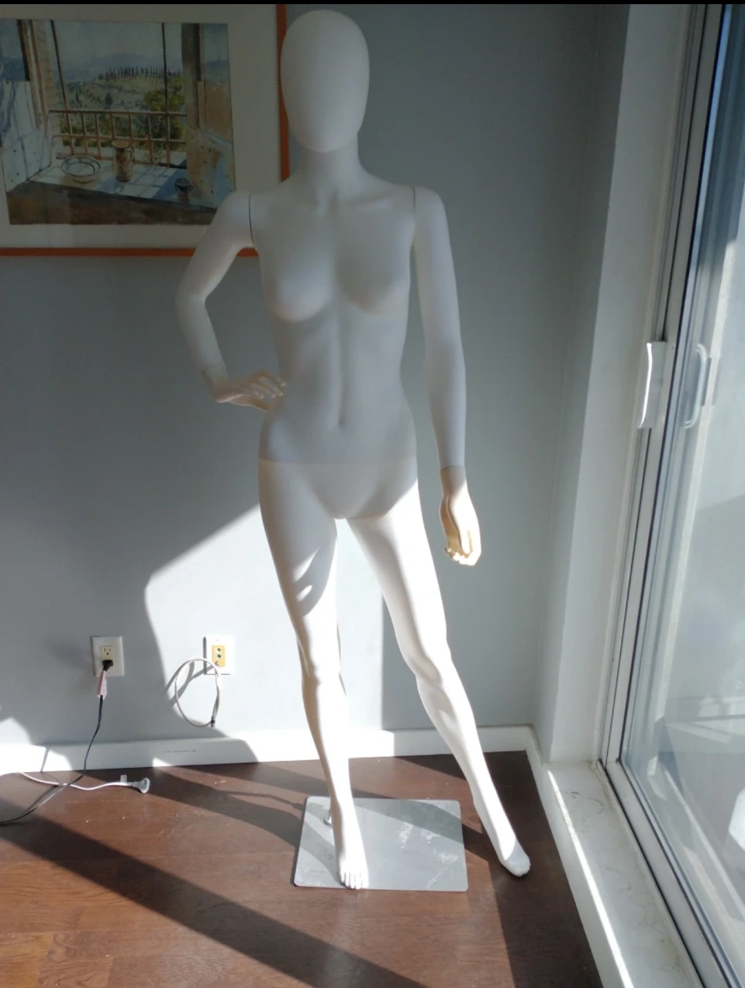 Full mannequin. Movable arms. Great for staging to sell clothes on various platforms or perhaps for an art project. Great used condition. Some light markings not noticeable in photos, especially when dressed.