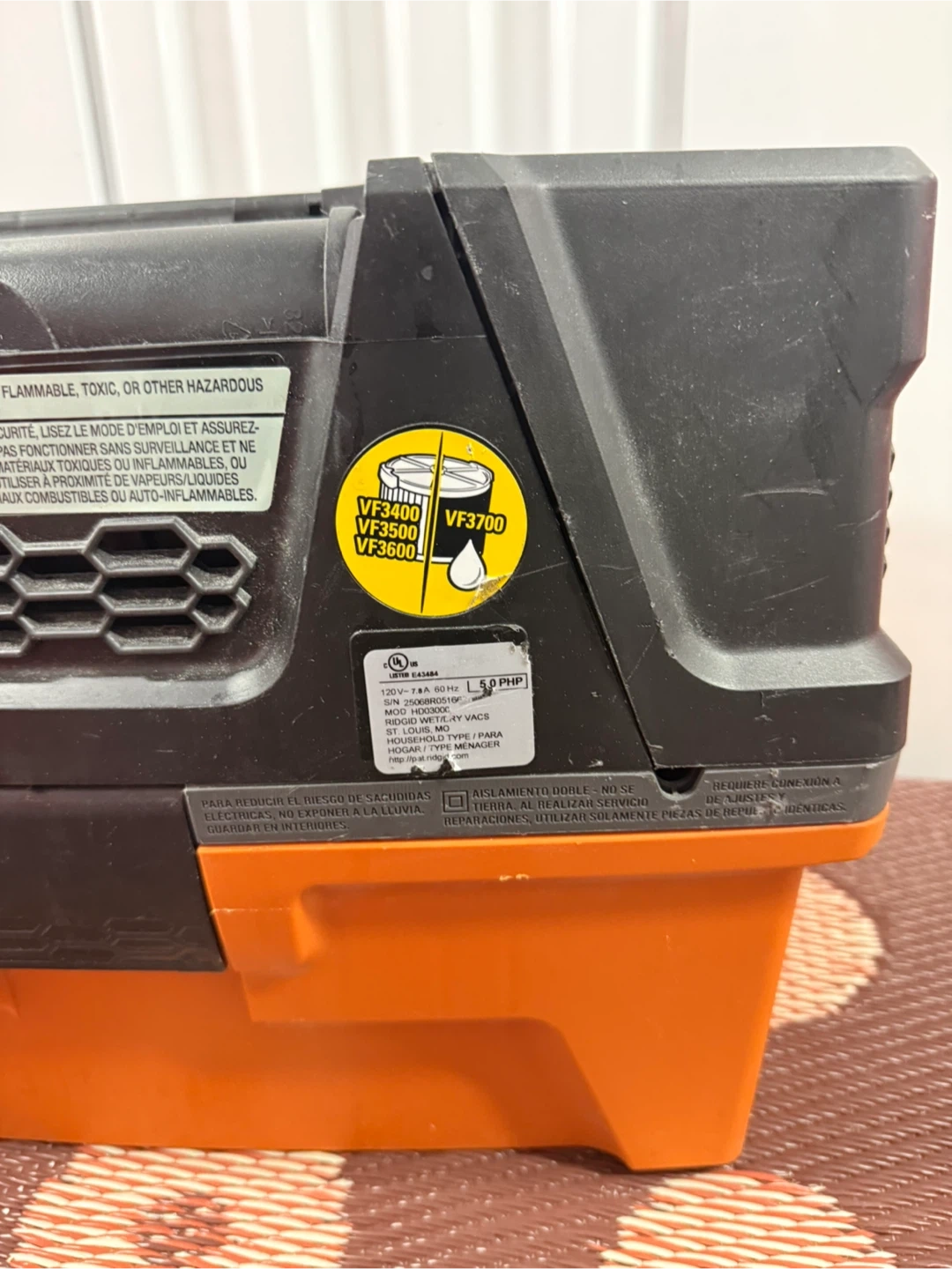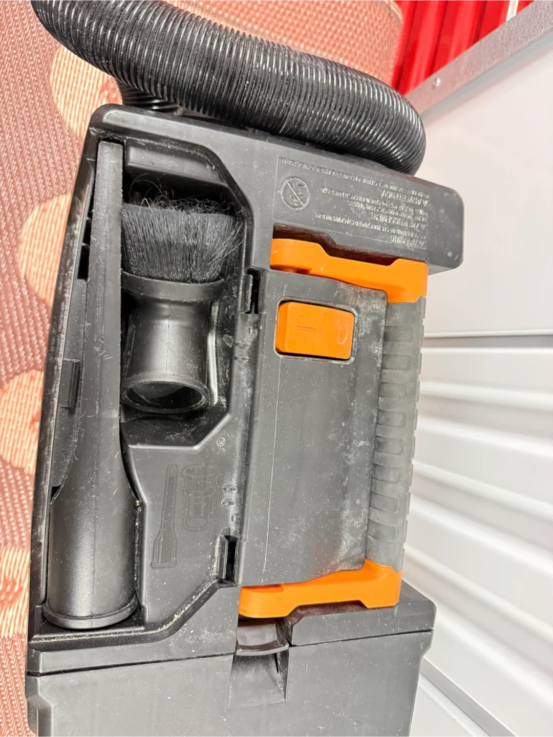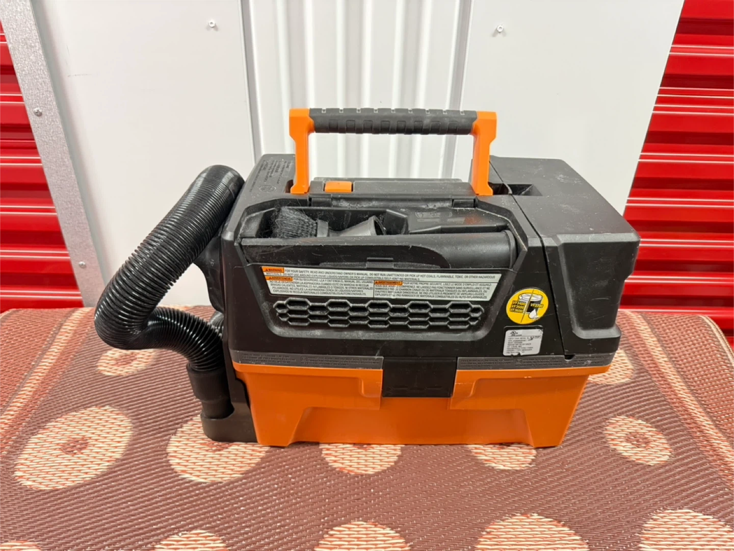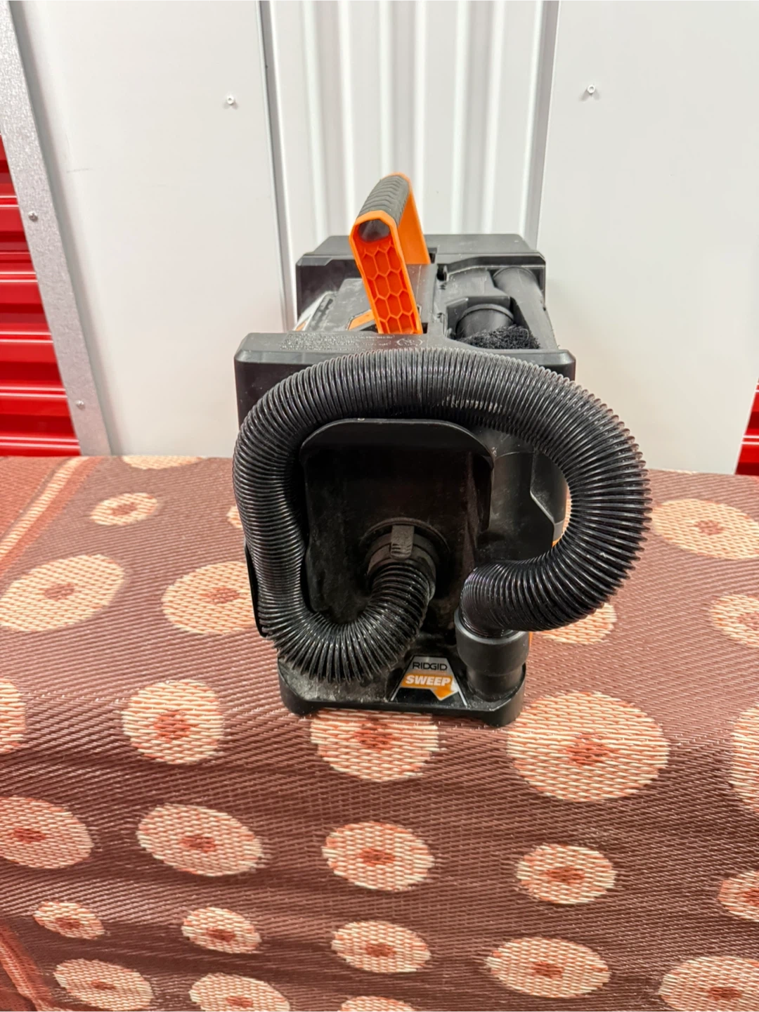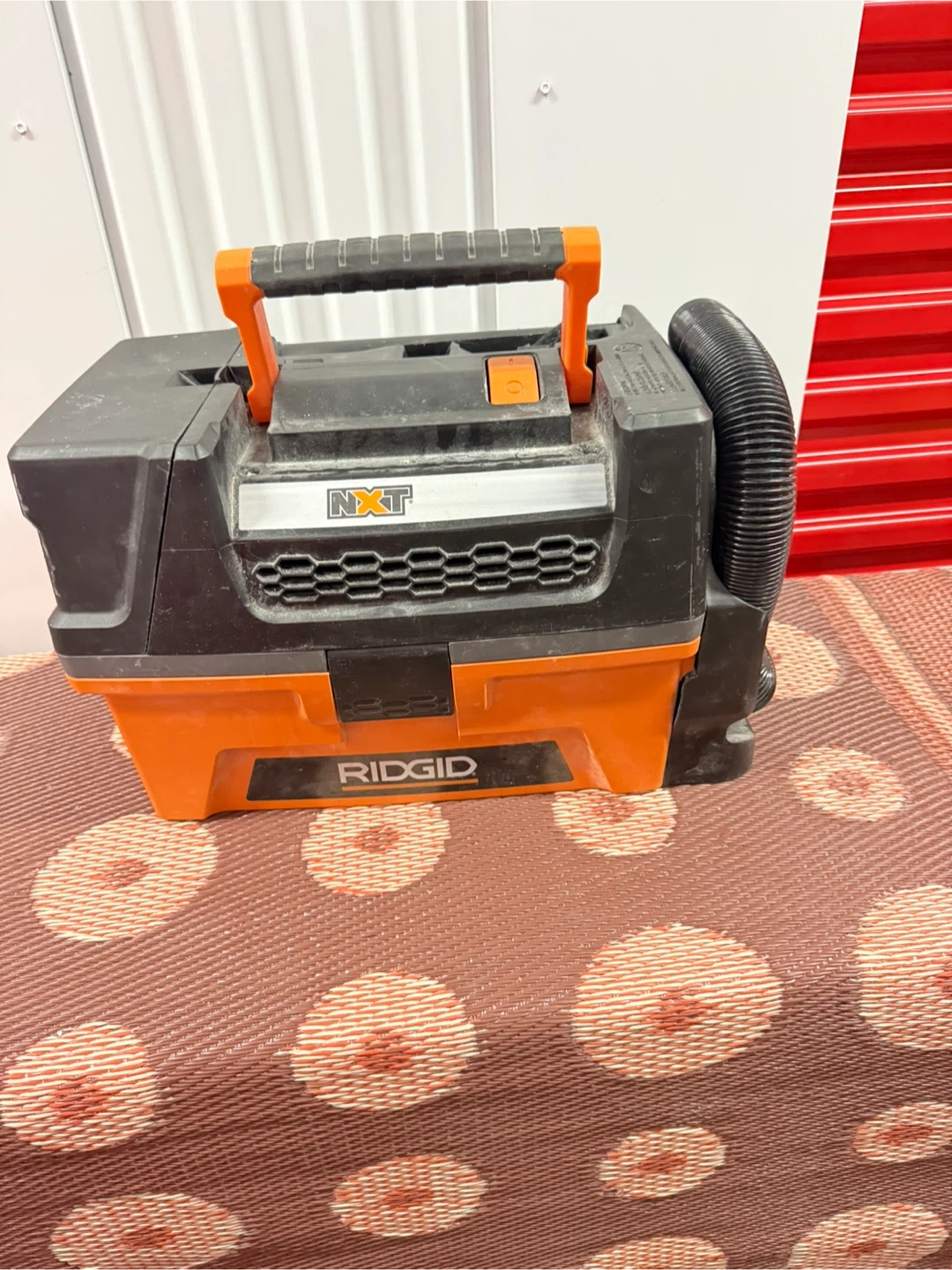 This is a RIDGID NXT Wet/Dry Vacuum. It's orange and black. Includes the vacuum unit and hose.