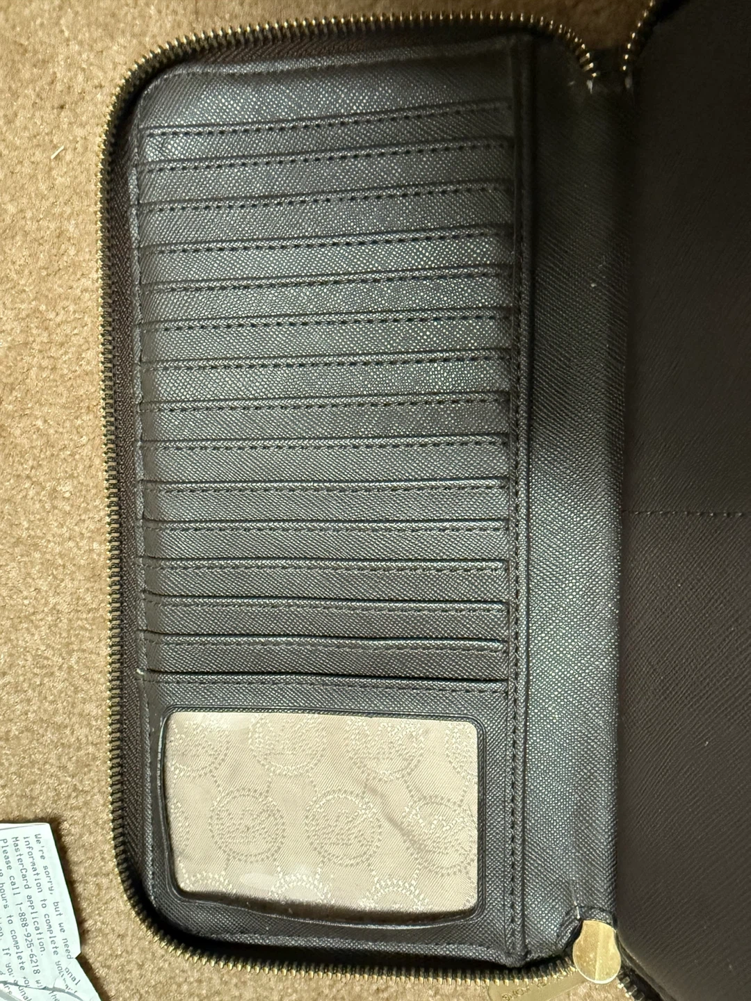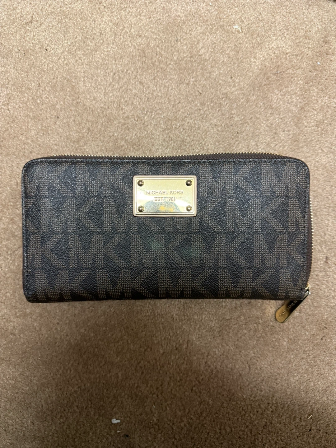 Selling a gently used Michael Kors wallet in a brown colour. It features the MK logo pattern and has a zippered closure. Lots of space inside for cards and cash!