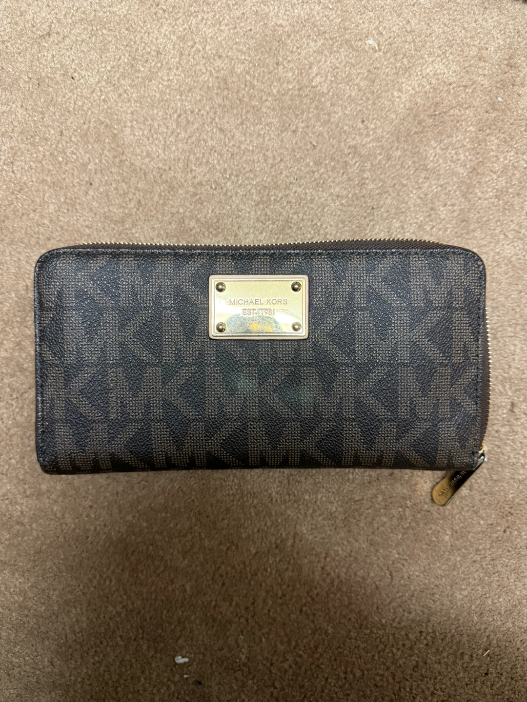 Selling a gently used Michael Kors wallet in a brown colour. It features the MK logo pattern and has a zippered closure. Lots of space inside for cards and cash!