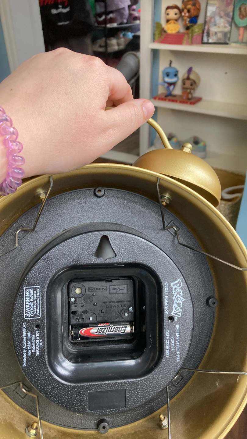 This classic twin-bell alarm clock features Pokémon characters Bulbasaur, Charmander, and Squirtle on its face. The clock has a gold-toned metal frame and a quartz movement. It's a fun way to wake up for any Pokémon fan!