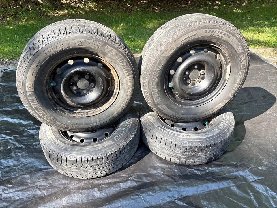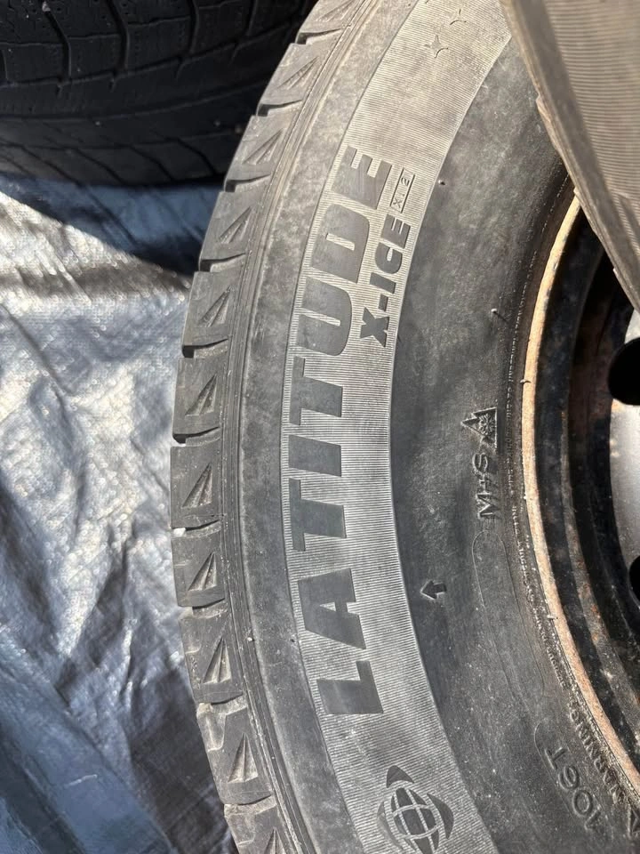 Used Michelin Xice tires with 6/32 tread remaining and in good overall shape. Tire size is 235/70R16 which is the same overall diameter as 235/65R17. Universal wheels. Bolt pattern is 5x114.3. Will work for vehicles with a center bore of 72mm or less. From a Nissan Rogue. $380. Pick up near Pembina and the perimeter.
