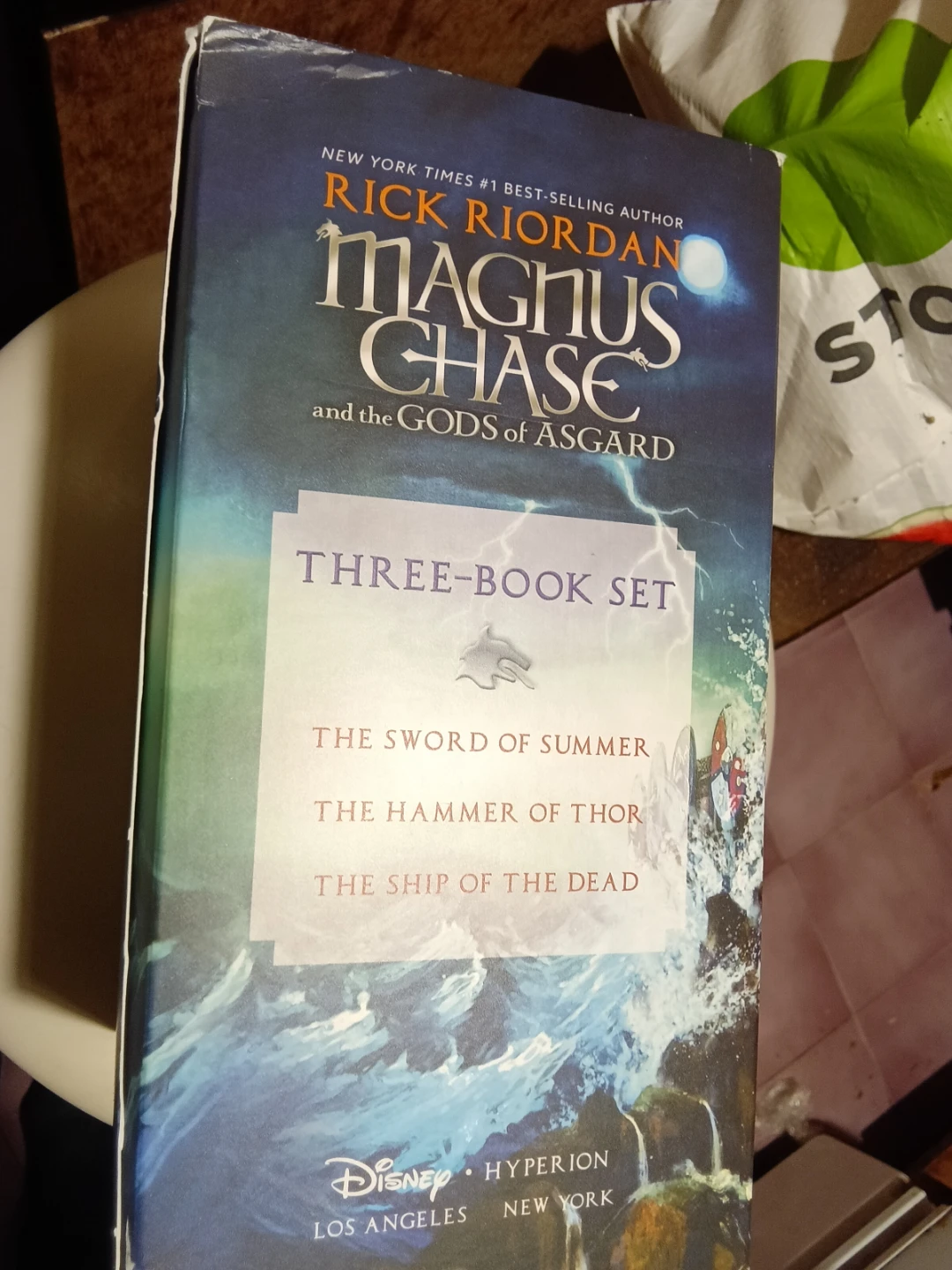 This is a three-book set of Rick Riordan's Magnus Chase and the Gods of Asgard series. It includes The Sword of Summer, The Hammer of Thor, and The Ship of the Dead. Published by Hyperion.