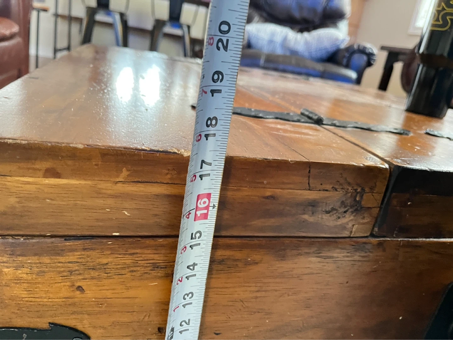 This wooden coffee table features a lift-top design, perfect for storing items. It's approximately 37 inches long and 20 inches high. The rustic wood finish adds character to any living space.