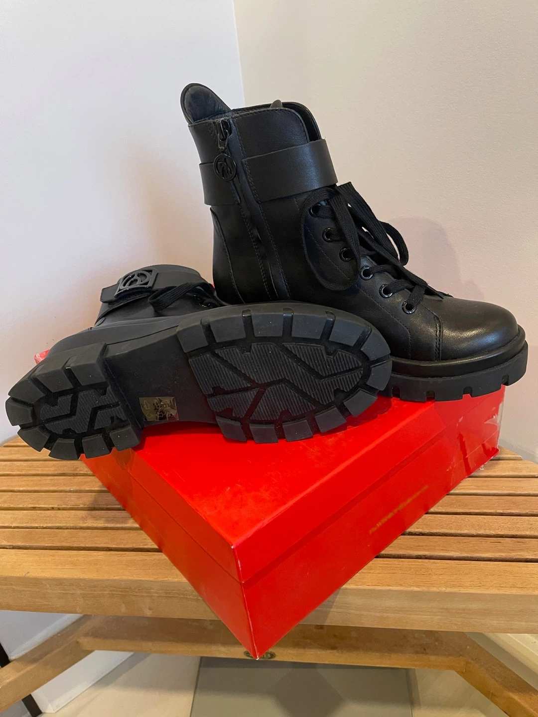 Selling a pair of Browns Wishbone Collection Floria boots in black. These are a size 6 but fit large, more like a size 6-1/2 - 7 (I wear size 7 and they fit). Comes with the original box. The boots are made of black calf leather with a black sole. Originally bought for $298 + tax. Brand new, never worn!