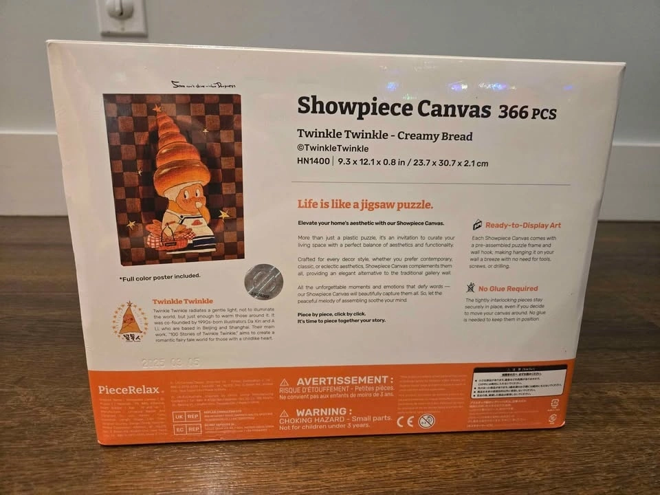 Beautiful canvas-style puzzle that turns into wall art once completed. Twinkle Twinkle - Creamy Bread design.