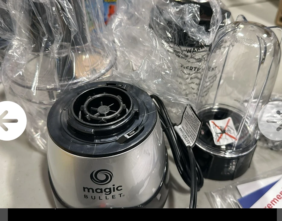 The Magic Bullet Kitchen Express™ Countertop Blender & Food Processor, BPA-Free, Silver/Black (#043-0786-8), is a compact 2-in-1 appliance that combines a personal blender and a mini food processor in one easy-to-use device. It features a 250-watt motor base, an 830ml (3.5-cup) work bowl with a feed chute, stacked chopping blade, reversible slice/shred disc, and two tall blending cups with a to-go lid. Designed for everyday use, this space-saving system blends, chops, mixes, slices, and shreds, and all components except the motor base are dishwasher safe for quick cleanup. Its BPA-free construction ensures safety, while the intuitive control dial offers simple operation with On and Pulse modes.