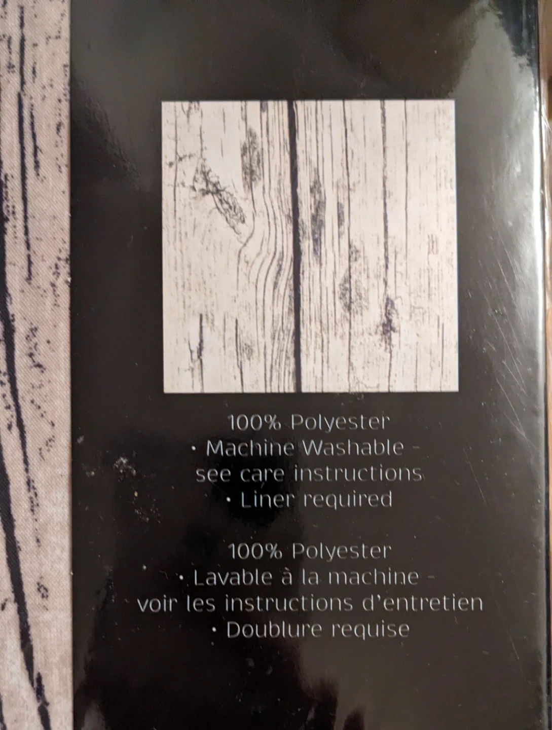 The curtain is made of 100% polyester and is machine washable for easy care. It measures 178 x 182 cm (70" x 72") and features a beautiful wood grain design. Please note that a liner is required