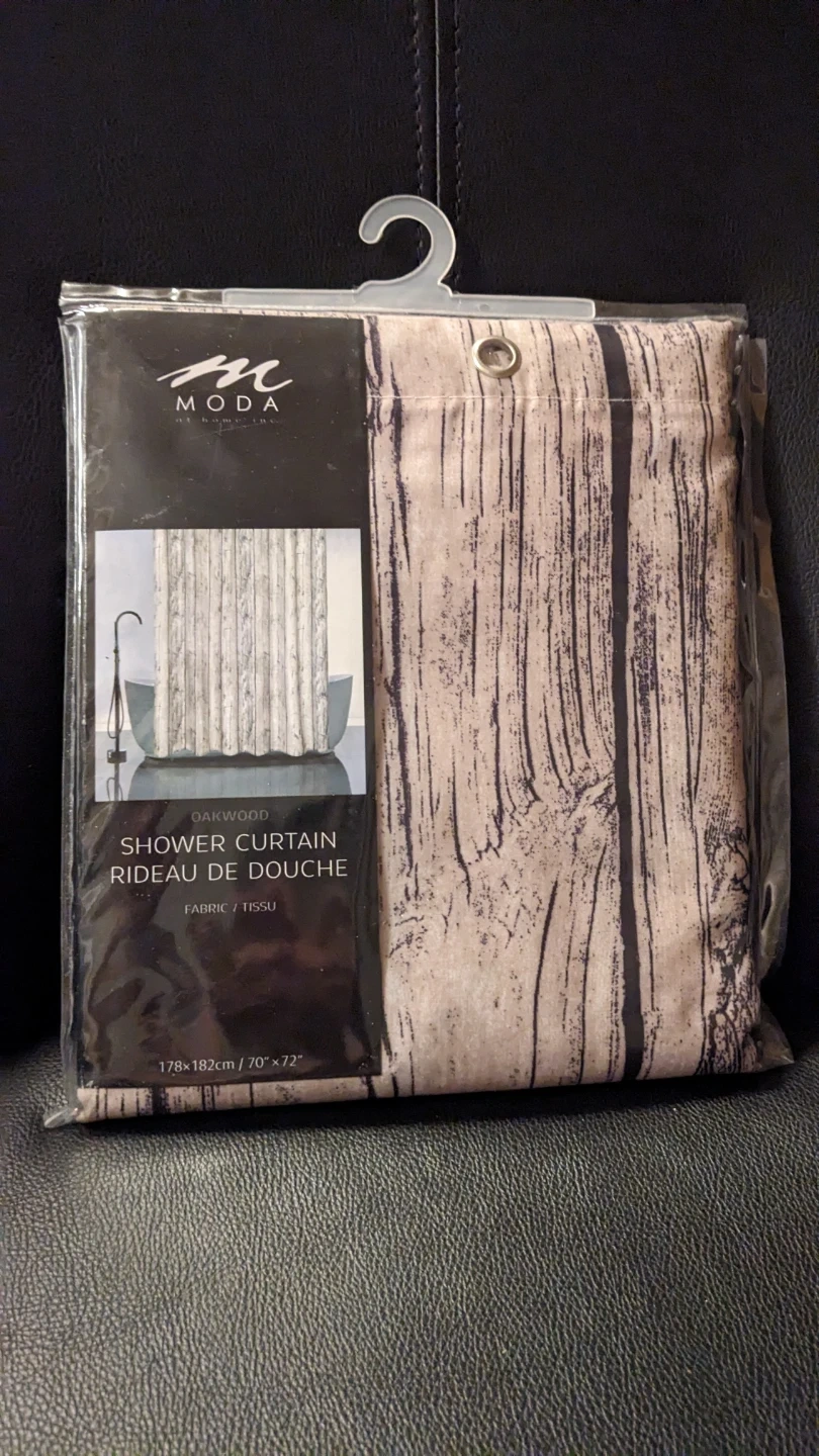 Add a touch of rustic charm to your bathroom with this Moda Oakwood shower curtain! It's brand new in the packaging.