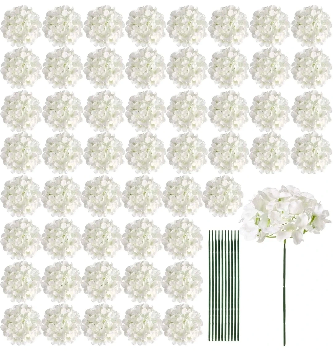 Selling this set that includes about 300 white hydrangea flower heads, perfect fir diy wedding decorations. It also comes with green stems for easy arrangement.