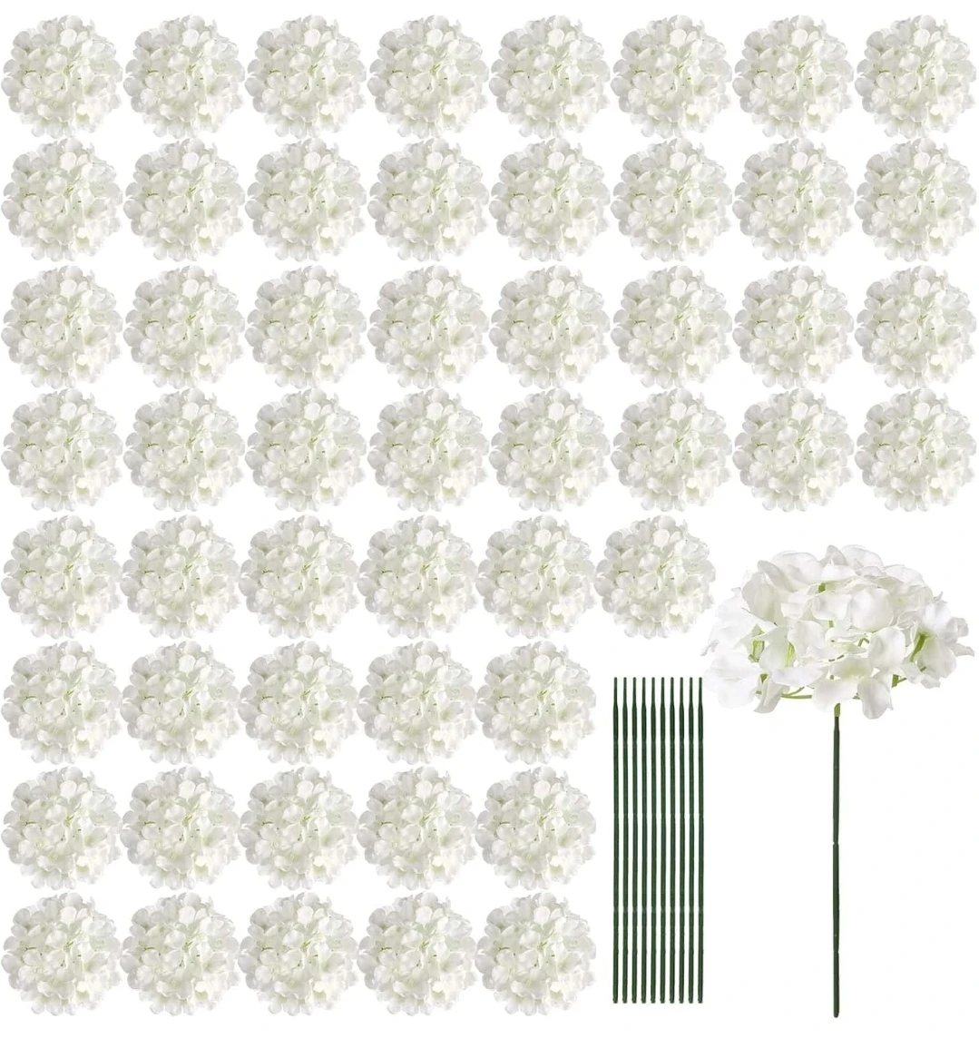 Selling this set that includes about 300 white hydrangea flower heads, perfect fir diy wedding decorations. It also comes with green stems for easy arrangement.
