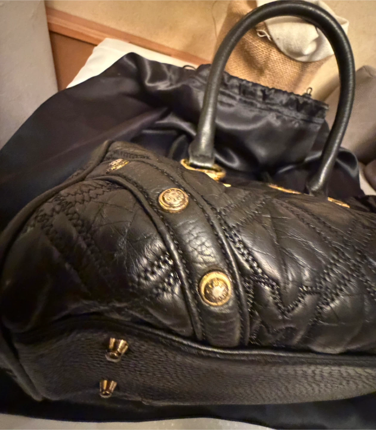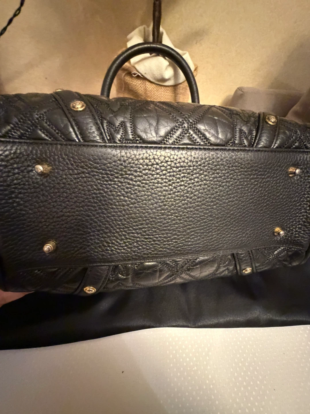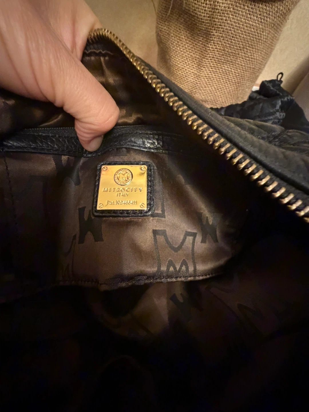 This is a METROCITY Italy handbag in black leather. It features gold hardware and a quilted design. It's in great condition and ready for a new owner! Comes from a smoker household .