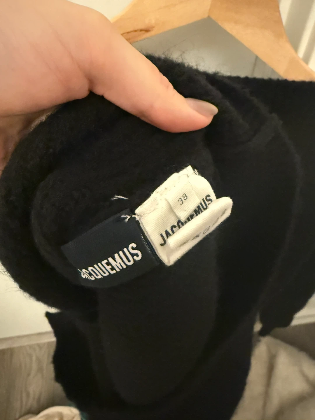 Selling a Jacquemus sweater in black. The size is 38. It's in great condition and ready for a new home!