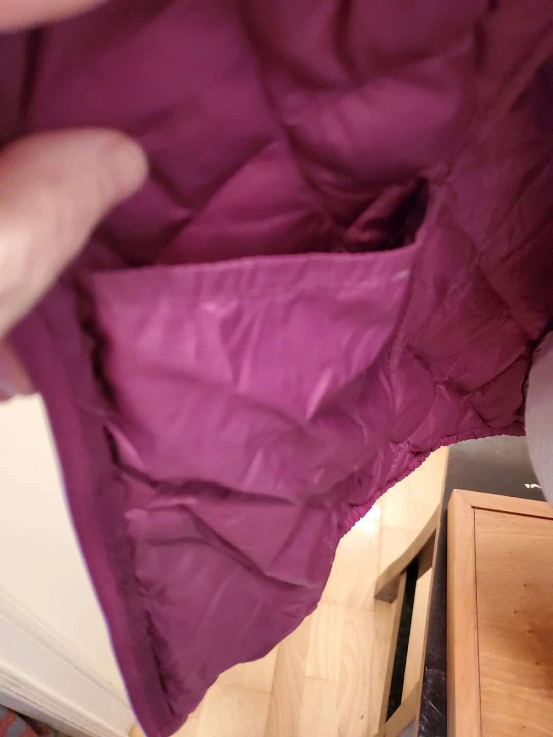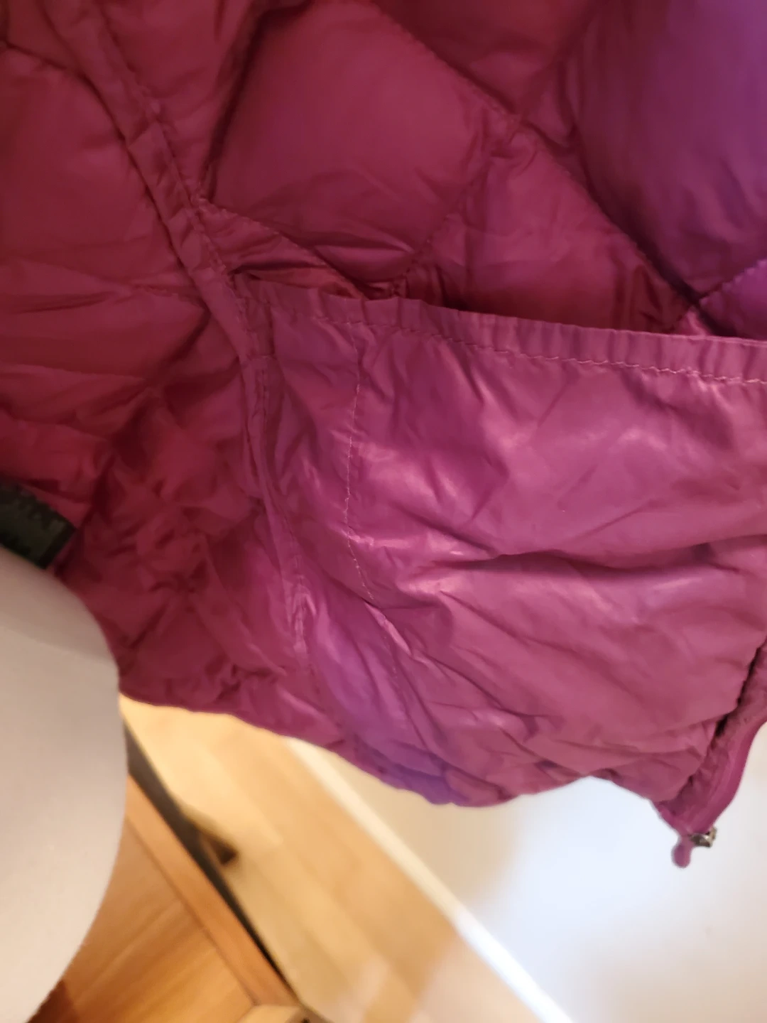 Selling a cute purple down puffer jacket! It's an X-Small size and made with 72% nylon and 28% polyester for the shell, and 100% nylon for the lining. The insulation is 90% down and 10% feathers. Perfect for staying warm and stylish! Cedar pick up.
