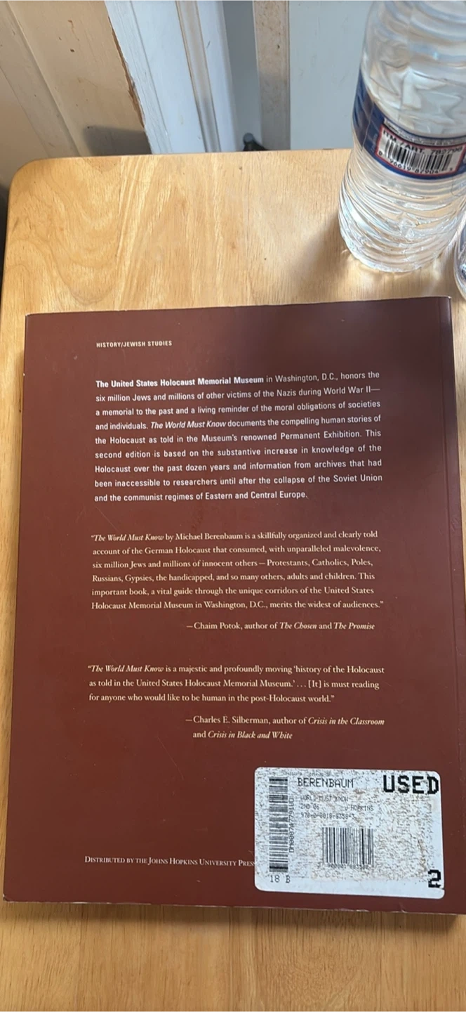 Selling "The World Must Know: The History of the Holocaust as Told in the United States Holocaust Memorial Museum" by Michael Berenbaum. This book delves into the history of the Holocaust. A sobering read.