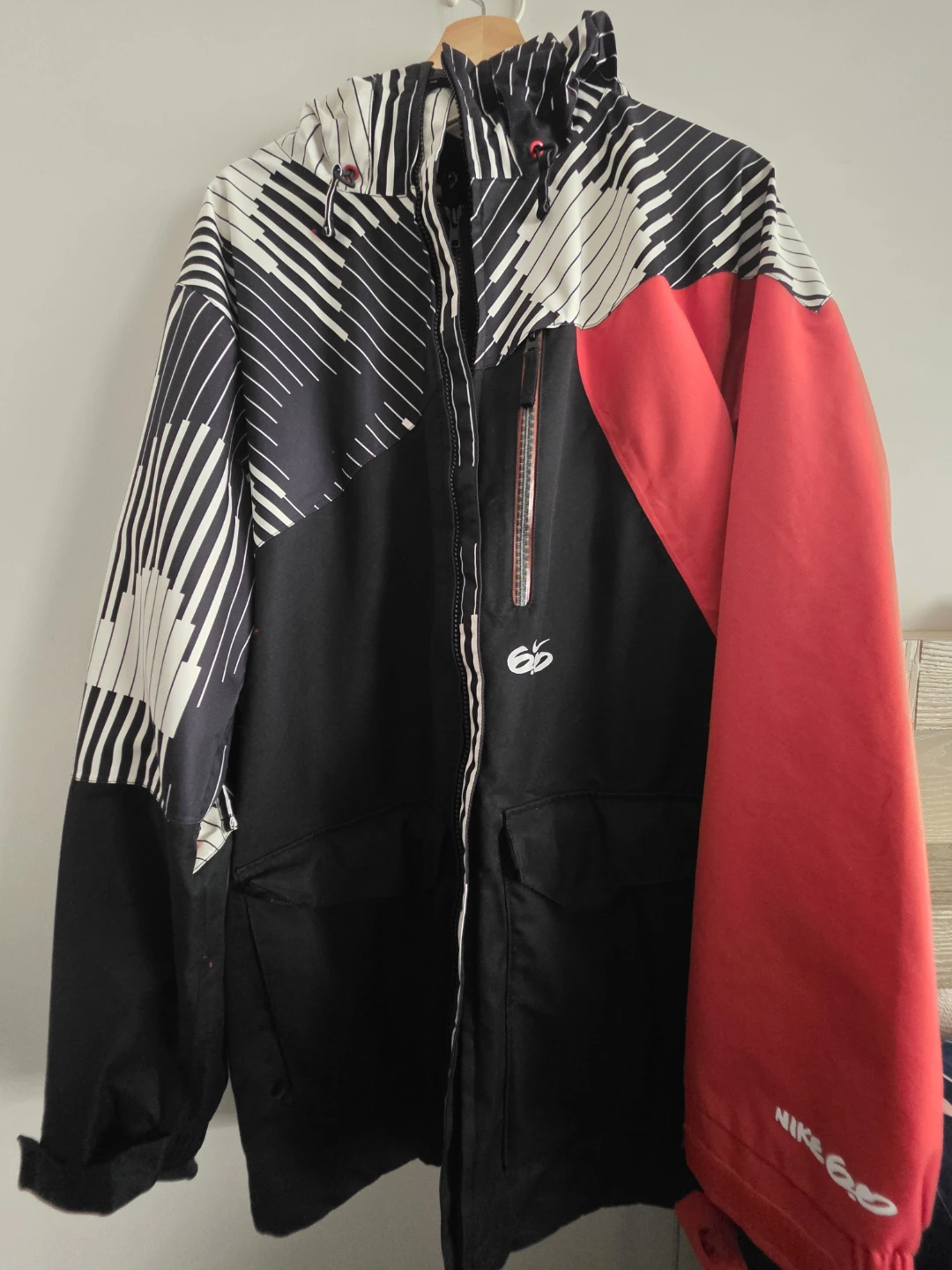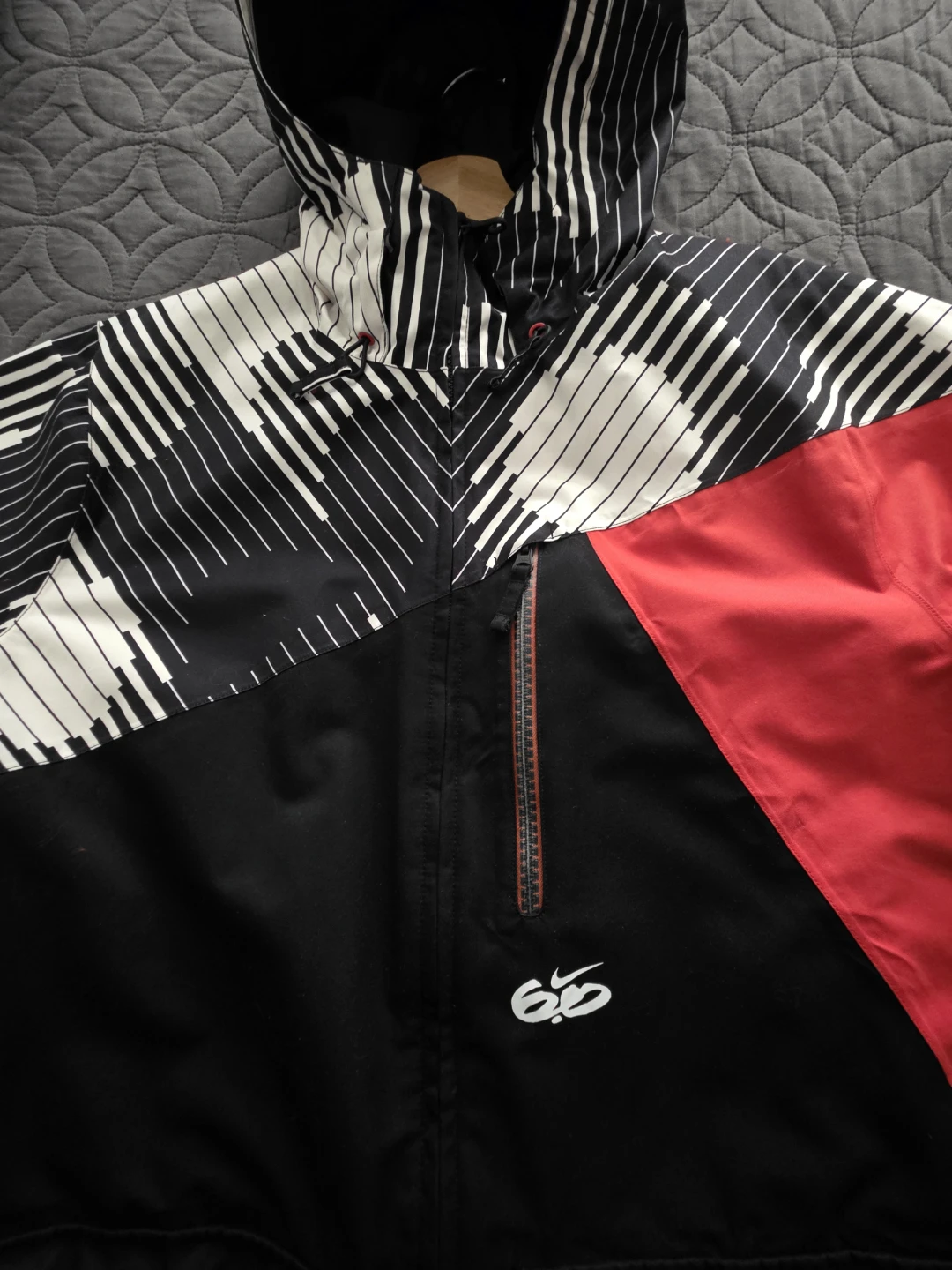 Selling a Large Nike 6.0 snowboarding jacket (Piano Edition)! It features a unique black, white, and red design. Perfect for hitting the slopes!