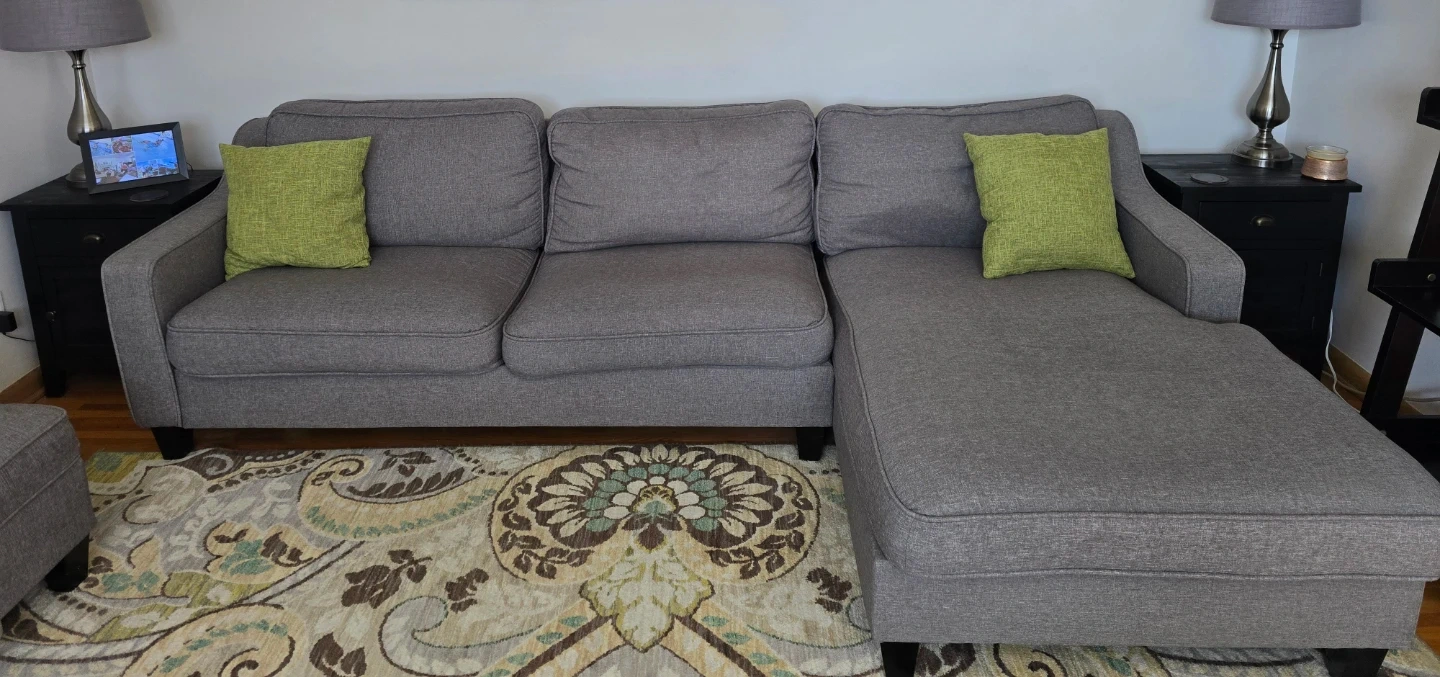 Grey Sectional Sofa right hand Chaise and lg. Storage ottoman
