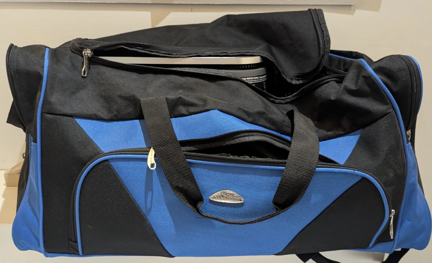 Here's a Chapman duffle bag in a black and blue colour scheme! It's in good condition and ready for your next trip to the gym or a weekend getaway