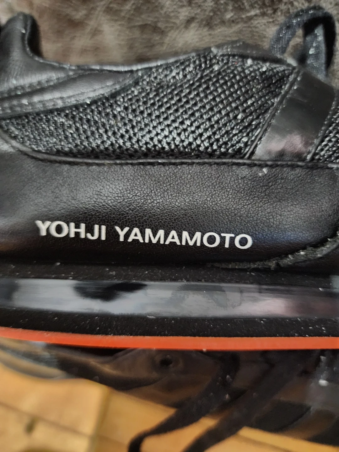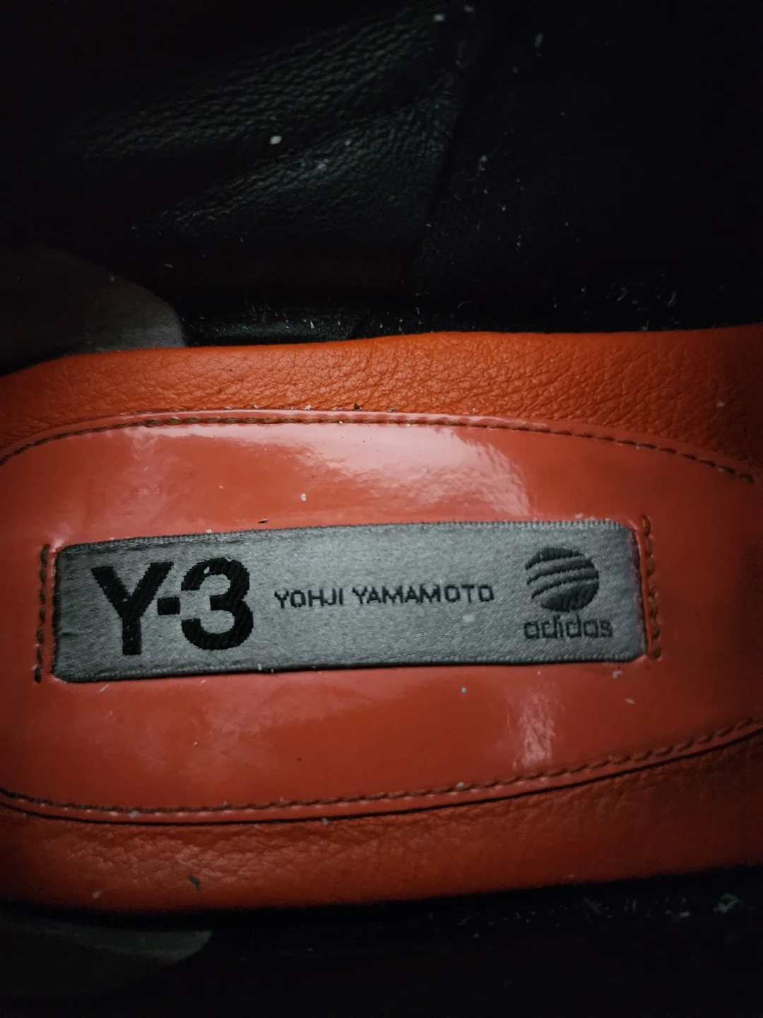 Baskets noires Y-3 Yohji Yamamoto pour hommes. Cuir et textile. Semelle orange. Lacets noirs.
