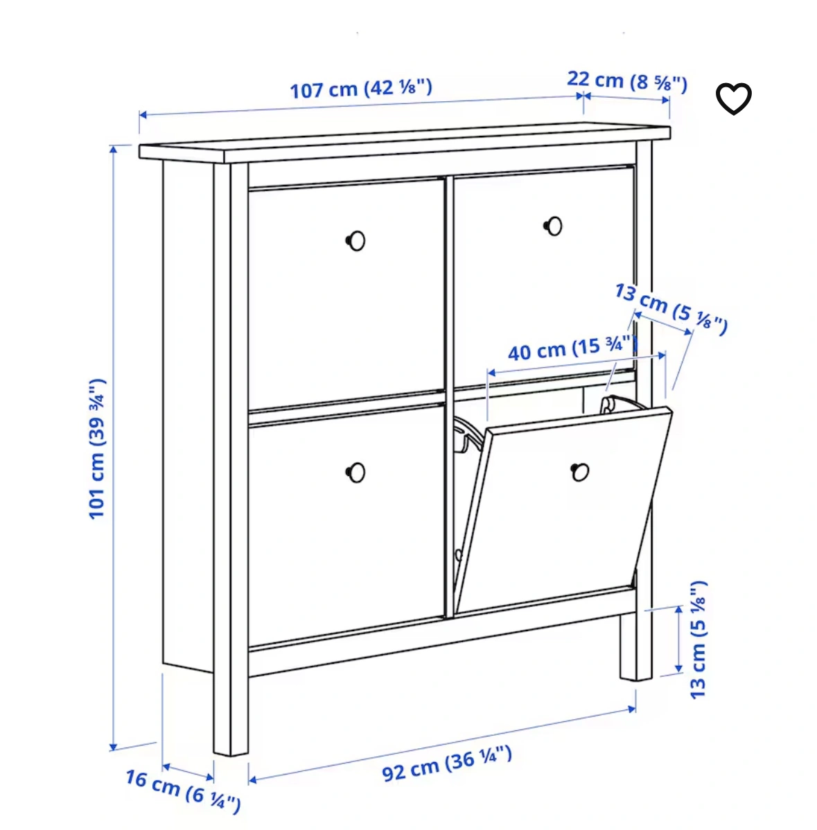 IKEA Hemnes shoe cabinet with 4 compartments. Originally bought for $179 plus tax. Selling for $120. Measurements as shown in last picture