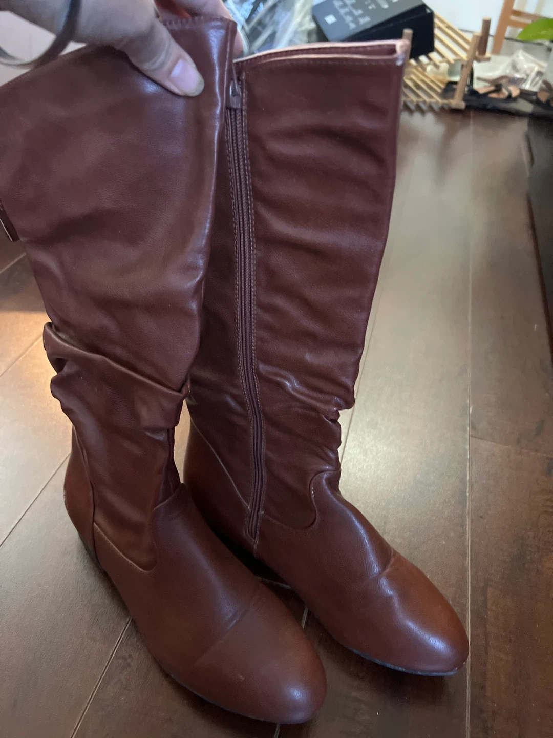 Maroon Faux Leather Knee-High Boots with Buckle Detail