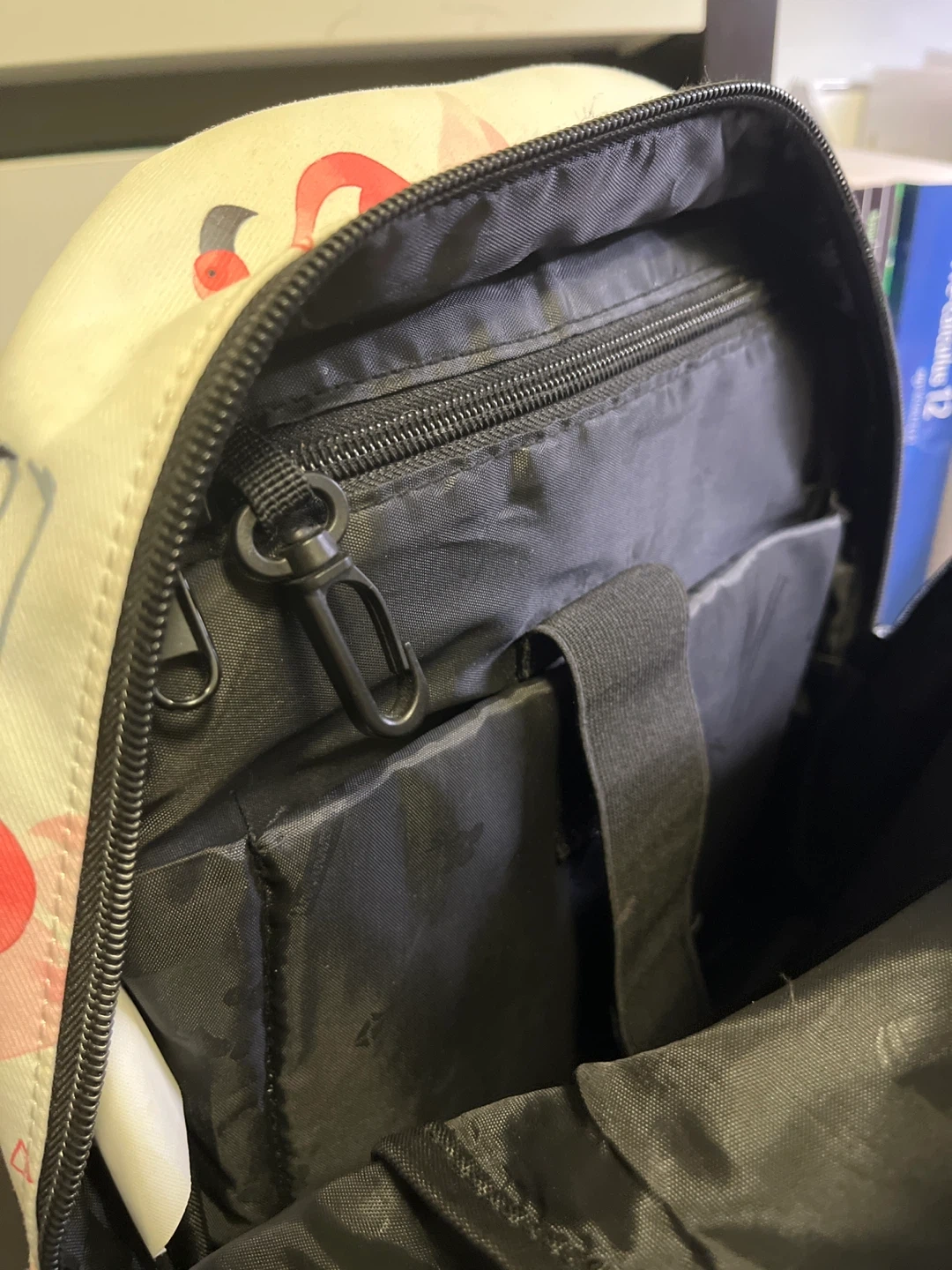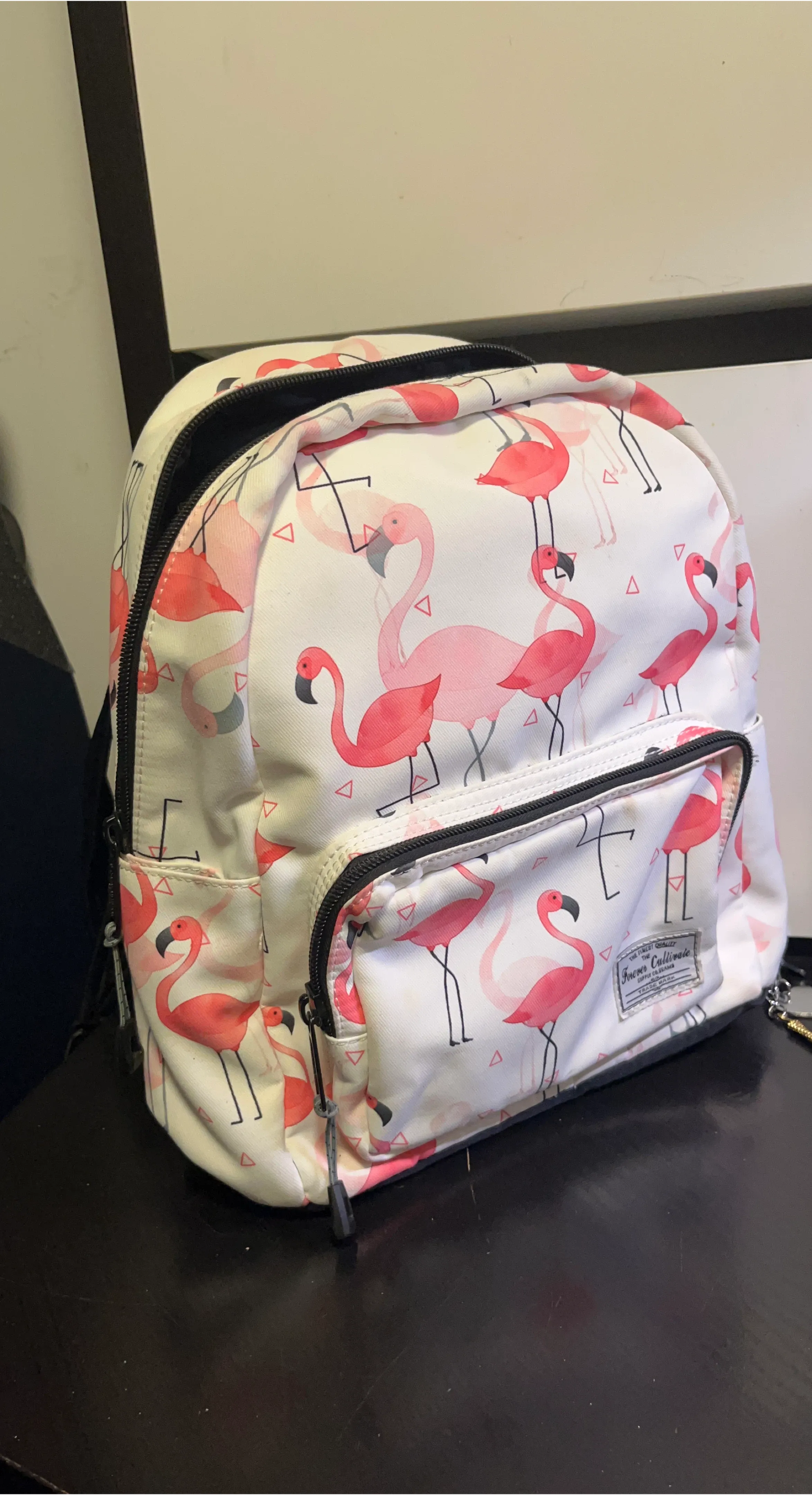 Selling a cute Laura Cullinane backpack with a fun flamingo pattern! It's in great condition and perfect for carrying your essentials. It has adjustable straps and multiple compartments inside