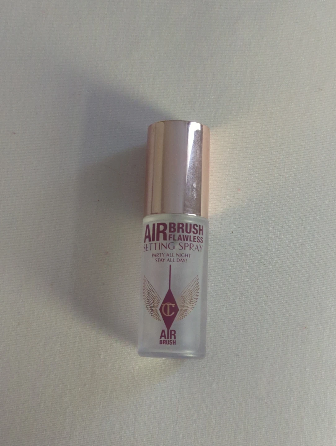 Charlotte Tilbury Airbrush Flawless Setting Spray. This setting spray helps your makeup last longer. It's a travel-size 34ml bottle. Perfect for keeping your makeup flawless all day and night!