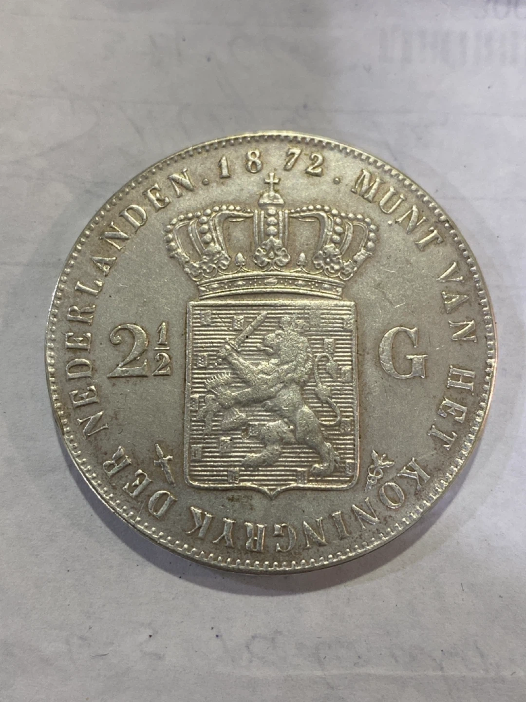 1872 Netherlands 2 1/2 Gulden Silver Coin