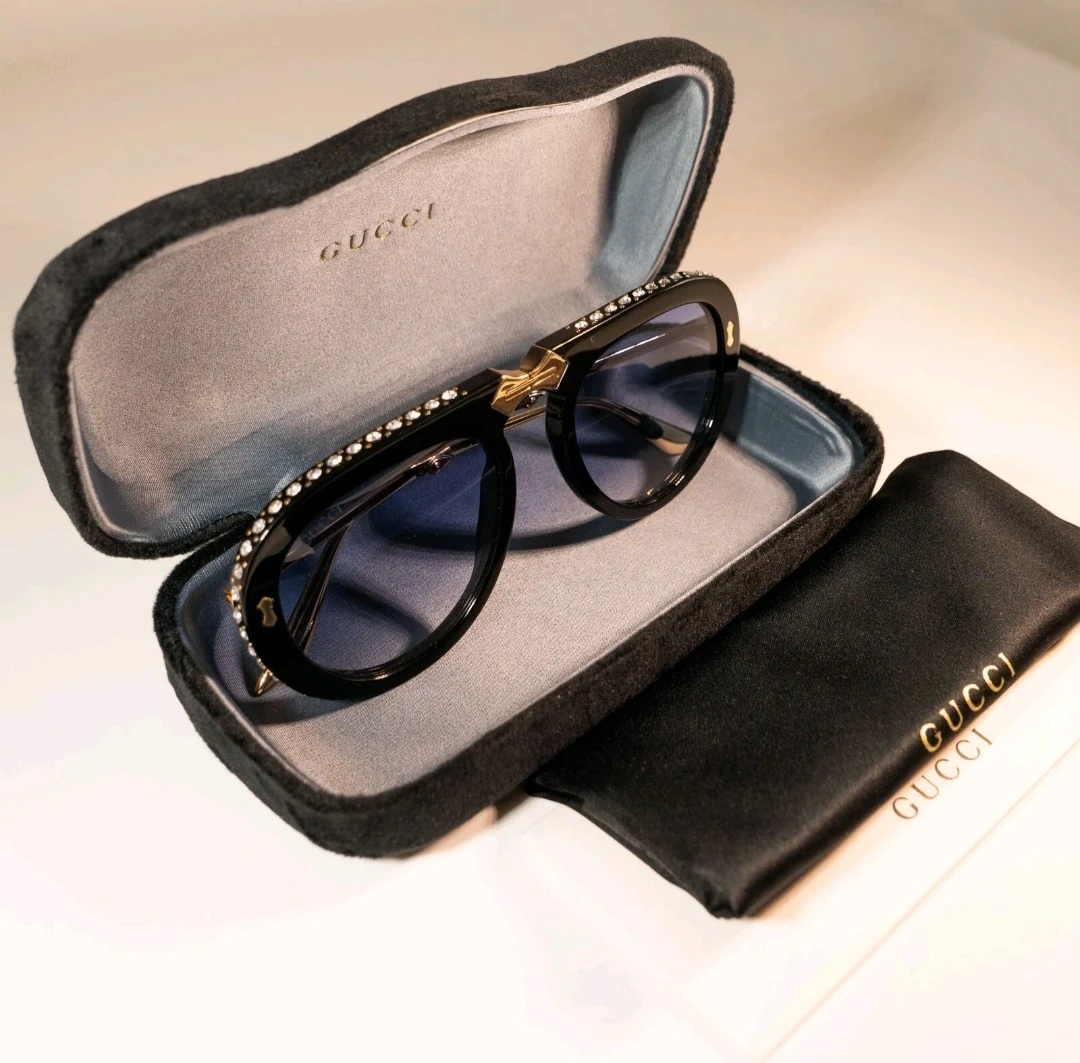 Gucci Black Aviator Sunglasses with Crystals