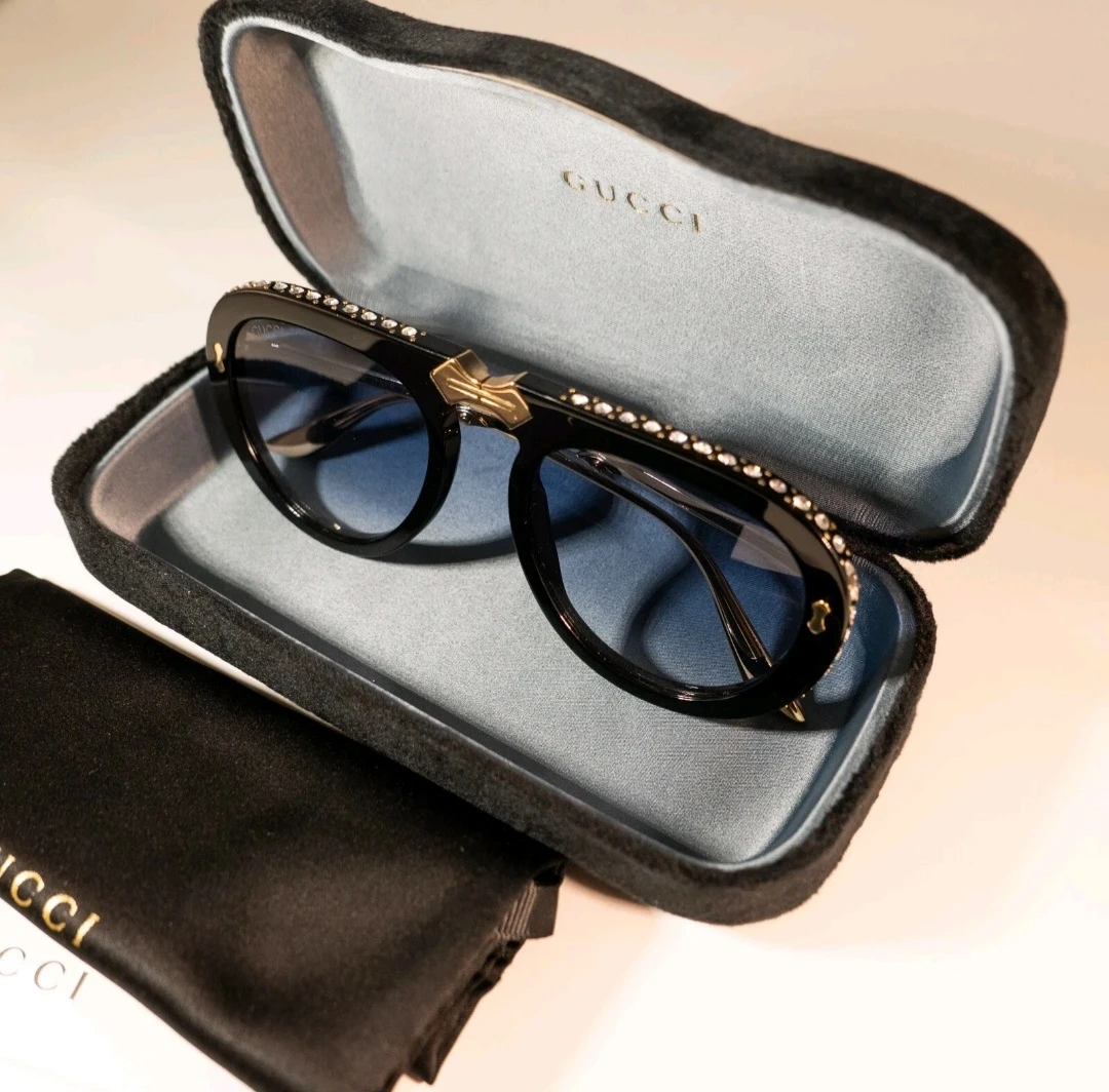 Gucci Black Aviator Sunglasses with Crystals