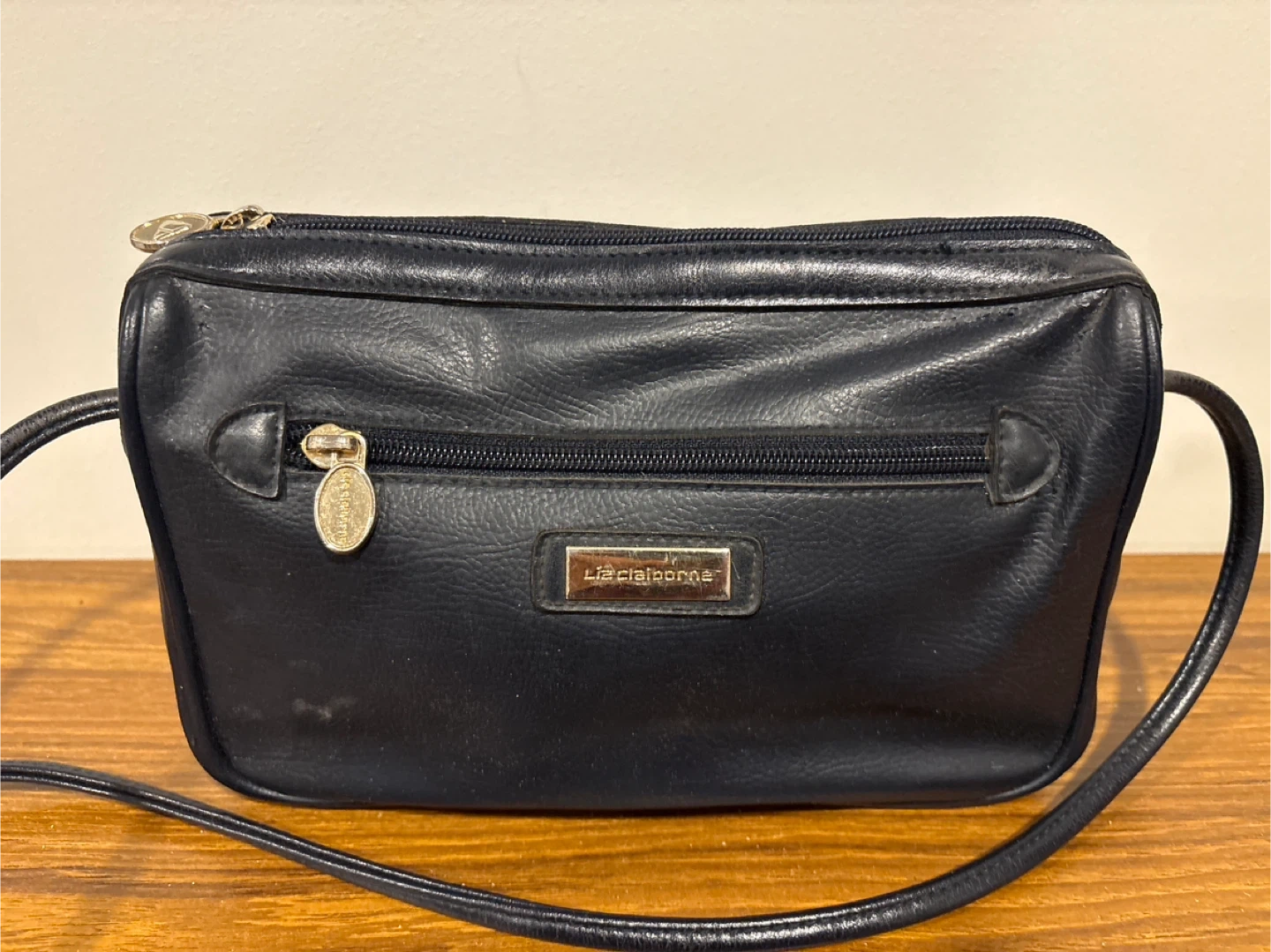 Selling a Liz Claiborne dark blue crossbody purse. It has a zipper closure and a long strap for comfortable wear. It's in good condition and perfect for everyday use!
