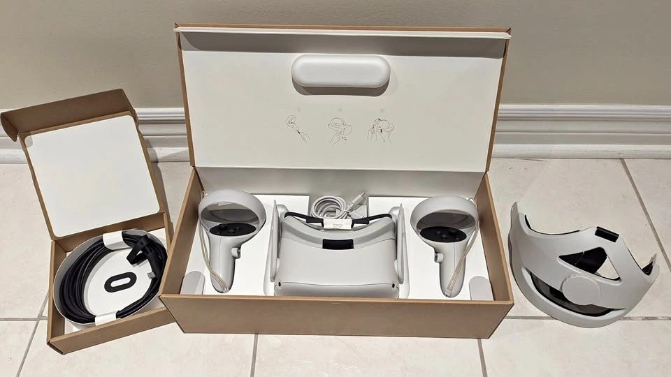 Selling used Meta Quest 2 64GB console. Well maintained in a clean, smoke free home. No dents or lens scratches. Includes console, controllers, charger and cable, glasses spacer, silicone face cover (removable for cleaning) Elite head strap, 5 Meter Official Link Cable. A great console for casual gaming, Roblox, or PCVR. Local pickup, Thornhill. Cash or E-Transfer.