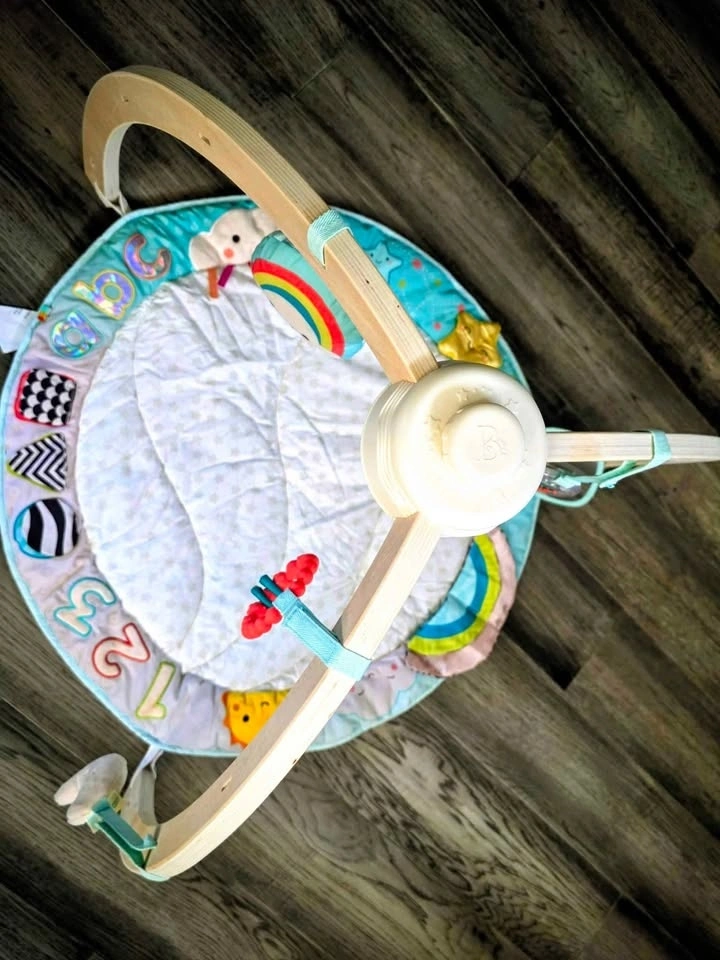 Baby Play Gym & Tummy Time Mat – Wooden Arch, Toys Included
