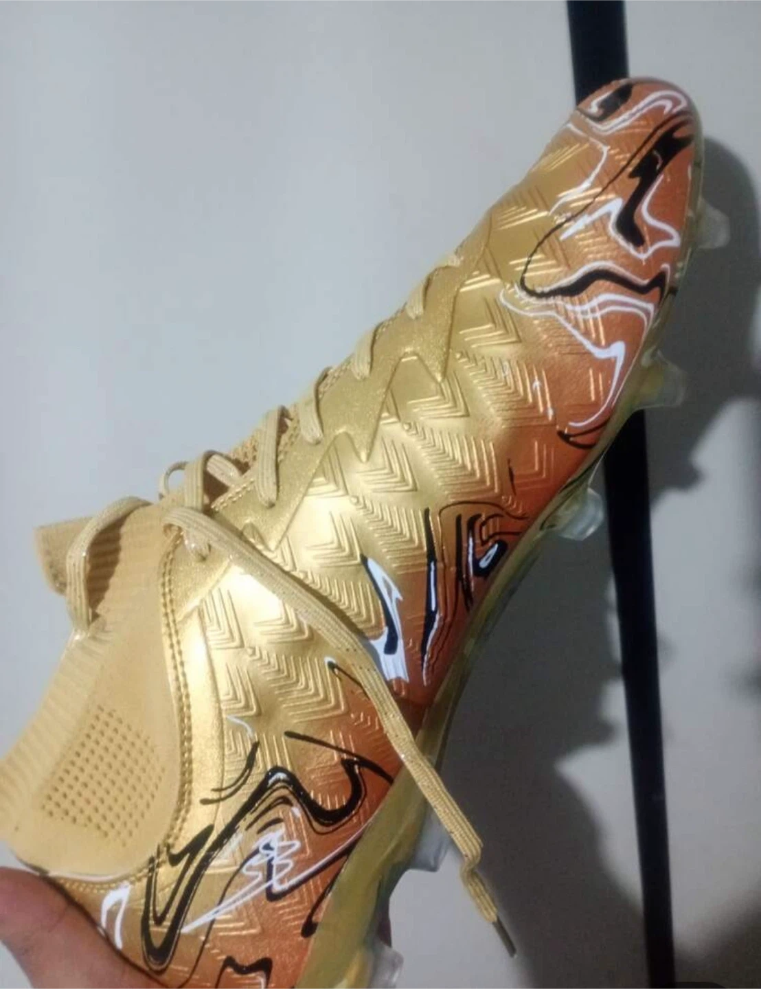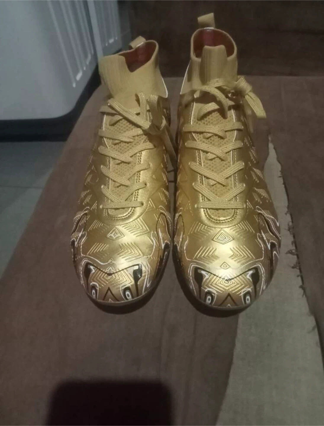 Selling a pair of gold soccer cleats. They have a unique design and are in great condition. Available in multiple sizes.