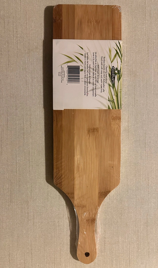 Bamboo and slate serving board. New in packaging. Size: 19.9” x 4.9”. Evening and weekend pickup only. Closest major intersection is Hurontario Street and Central Parkway in Mississauga.