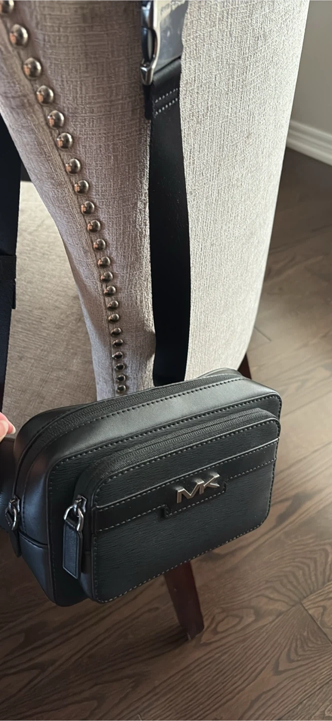 Selling a sleek Michael Kors black crossbody bag! It's in great condition and perfect for everyday use. The bag features the signature MK logo and a convenient adjustable strap