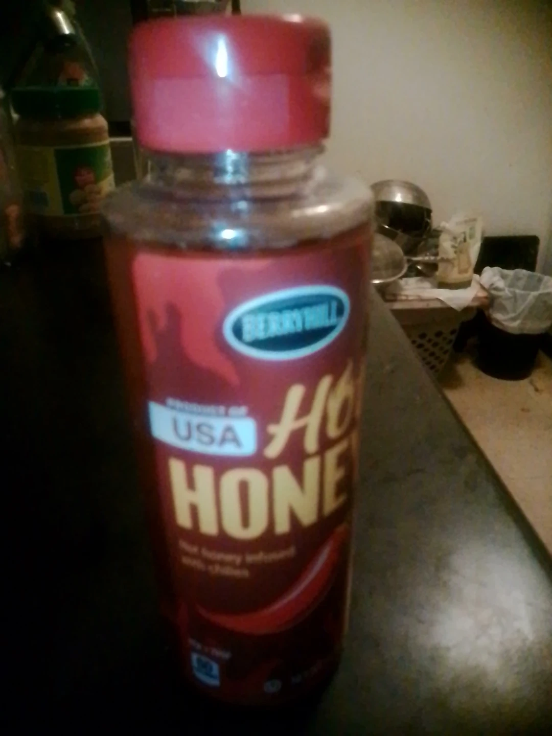 This is Berryhill Hot Honey, a blend of hot honey infused with chilies. It's made in the USA. Perfect for adding a sweet and spicy kick to your favorite dishes!