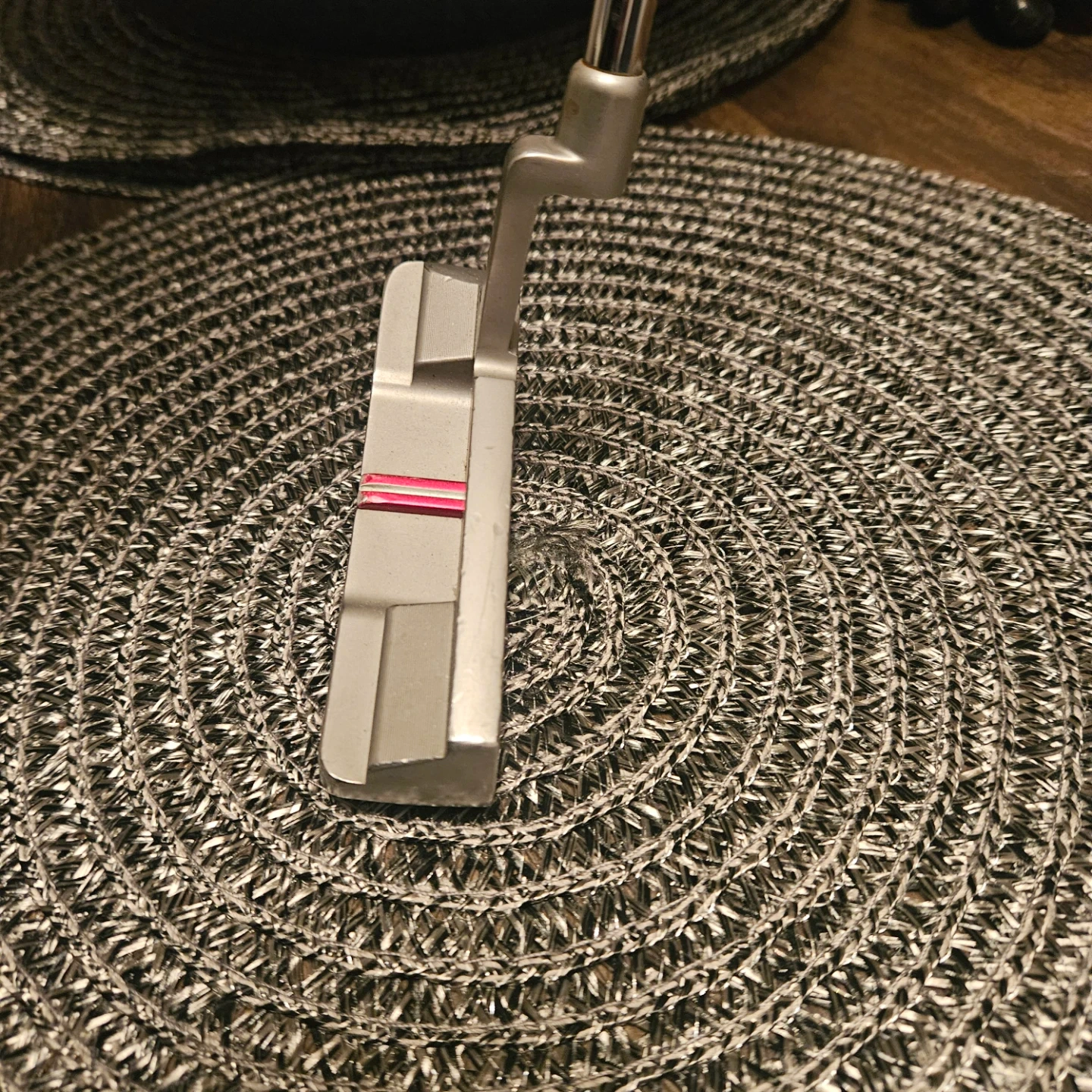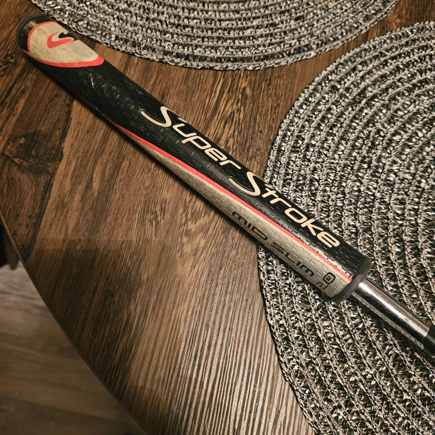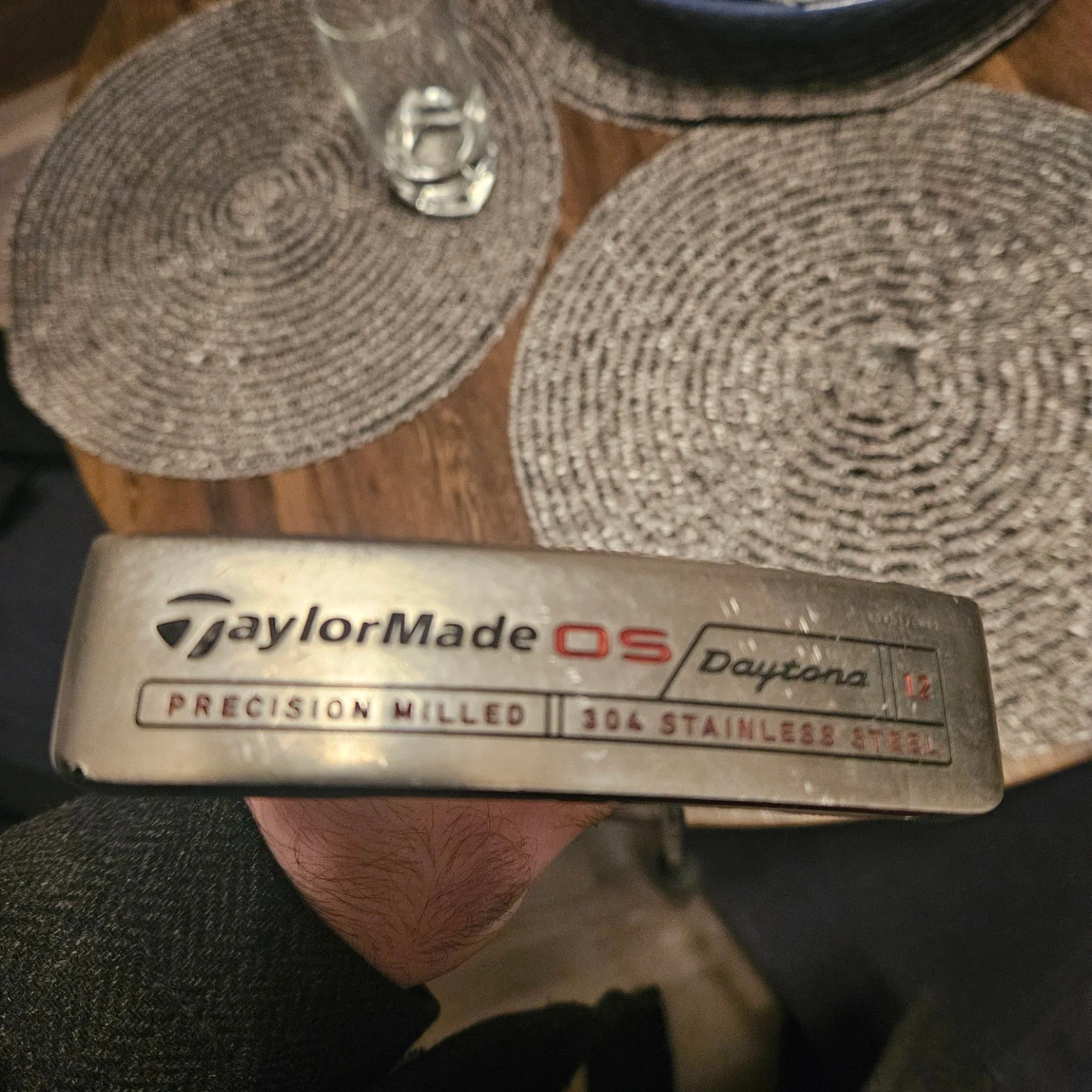 This is a TaylorMade OS Daytona putter. It's precision milled from 304 stainless steel. The grip is a Super Stroke Mid Slim. It's a great choice for golfers looking for a reliable putter. 34".