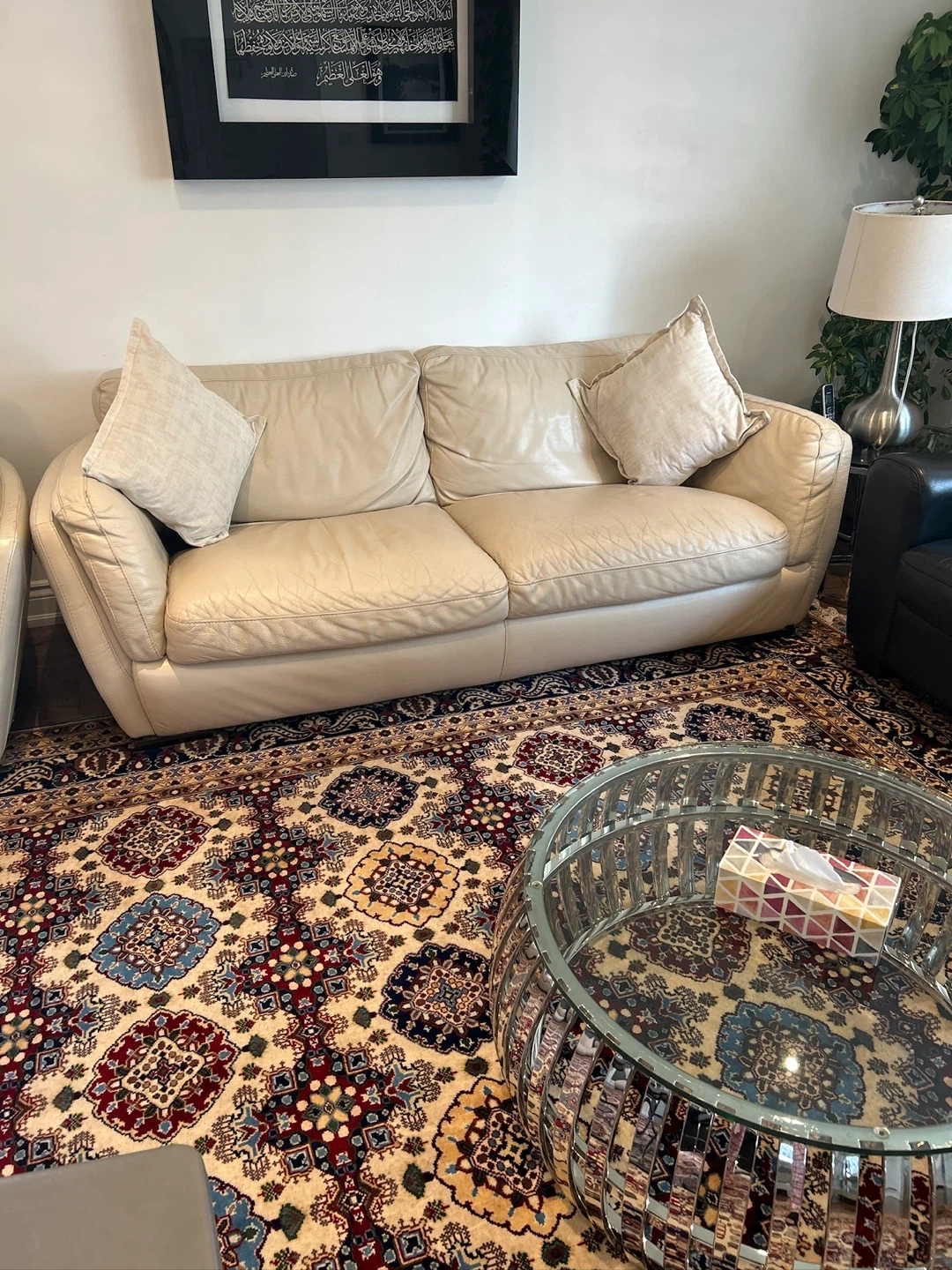 Buy & SellCream Leather SofaCream Leather Sofa$250Cream-coloured leather sofa with plush cushions. This sofa is made of genuine leather. It's a great addition to any living room!ConditionGoodWHERE TO MEETM1R1N1View MapSELLERverifiedTerinaWexford30628 reviews0 chats·0 favorites·17 viewsSEND CHAT TO SELLERHi Terina! I’m interested in your listing.Hi Terina! I’m interested in your listing.Get the Karrot app to chatSign In to chat