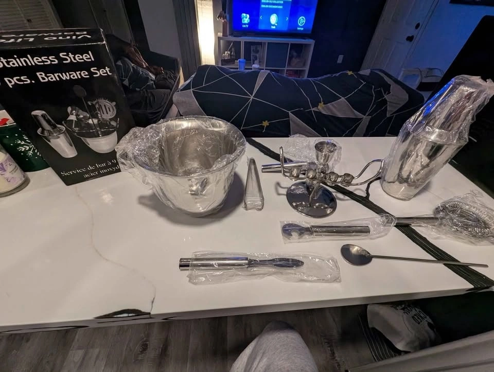 Buy & SellStainless Steel 9 Piece Barware SetStainless Steel 9 Piece Barware Set$20Let me know if you're interested!WHERE TO MEETCheck LocationView MapSELLERKevinCastlehill park140 reviews0 chats·0 favorites·3 viewsSEND CHAT TO SELLERHi Kevin! I’m interested in your listing.Hi Kevin! I’m interested in your listing.Get the Karrot app to chatSign In to chat