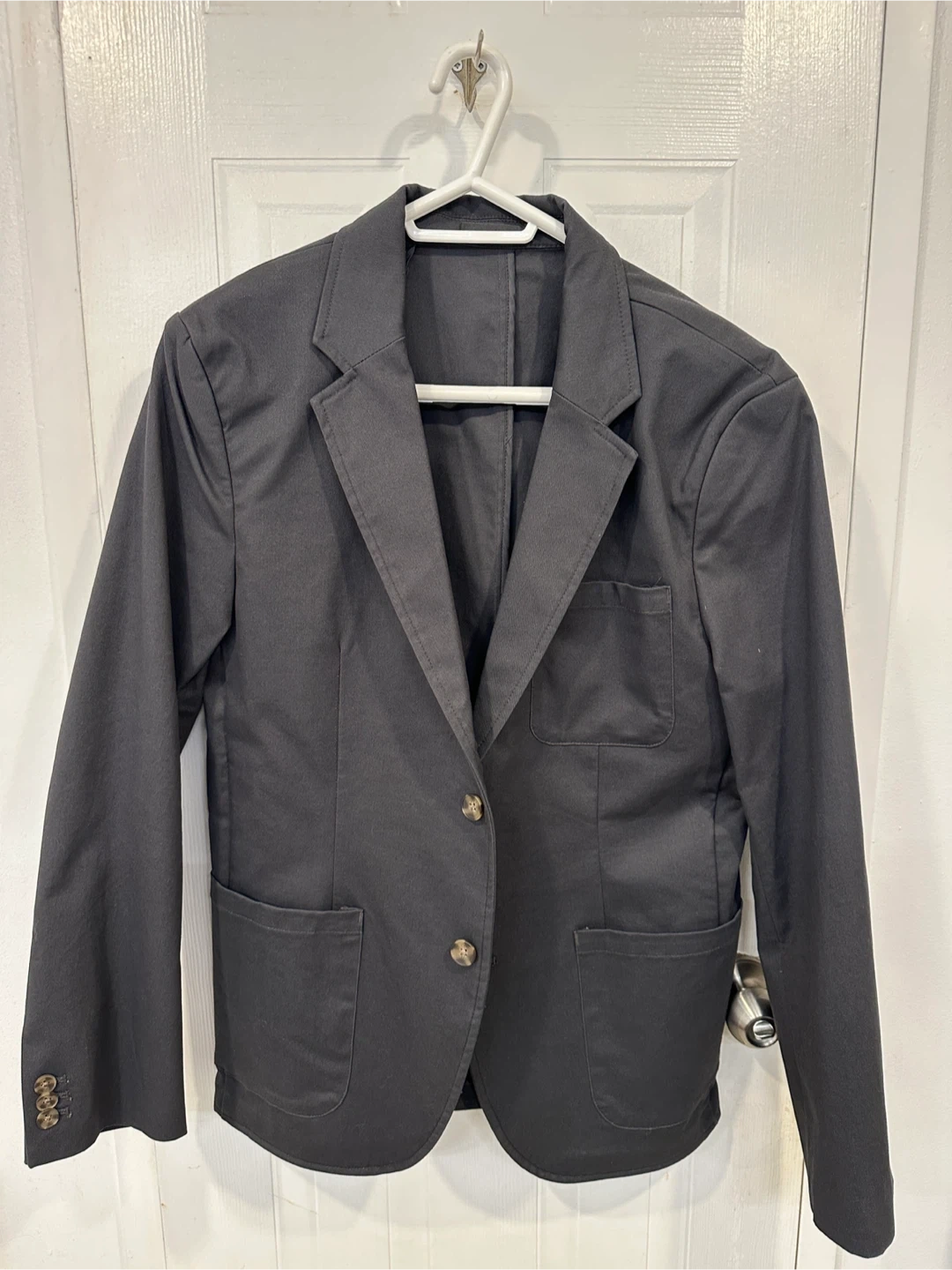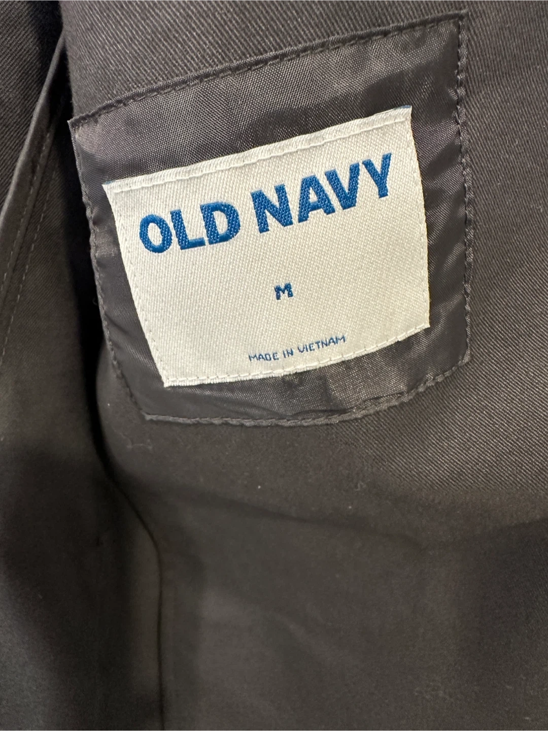 Never worn - This is an Old Navy men's grey blazer. It's a size medium. The shell is 98% cotton and 2% elastane, with a lining of 100% polyester.