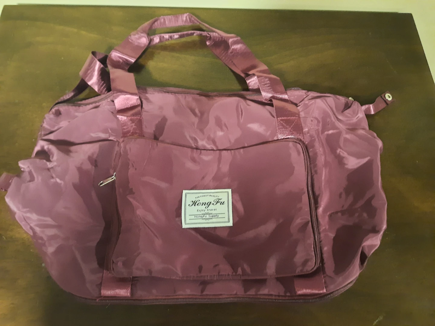 This is a Hong Fu travel bag, perfect for weekend getaways. It's made of a durable, lightweight material. This bag is great for quick trips and fits a good amount of essentials!