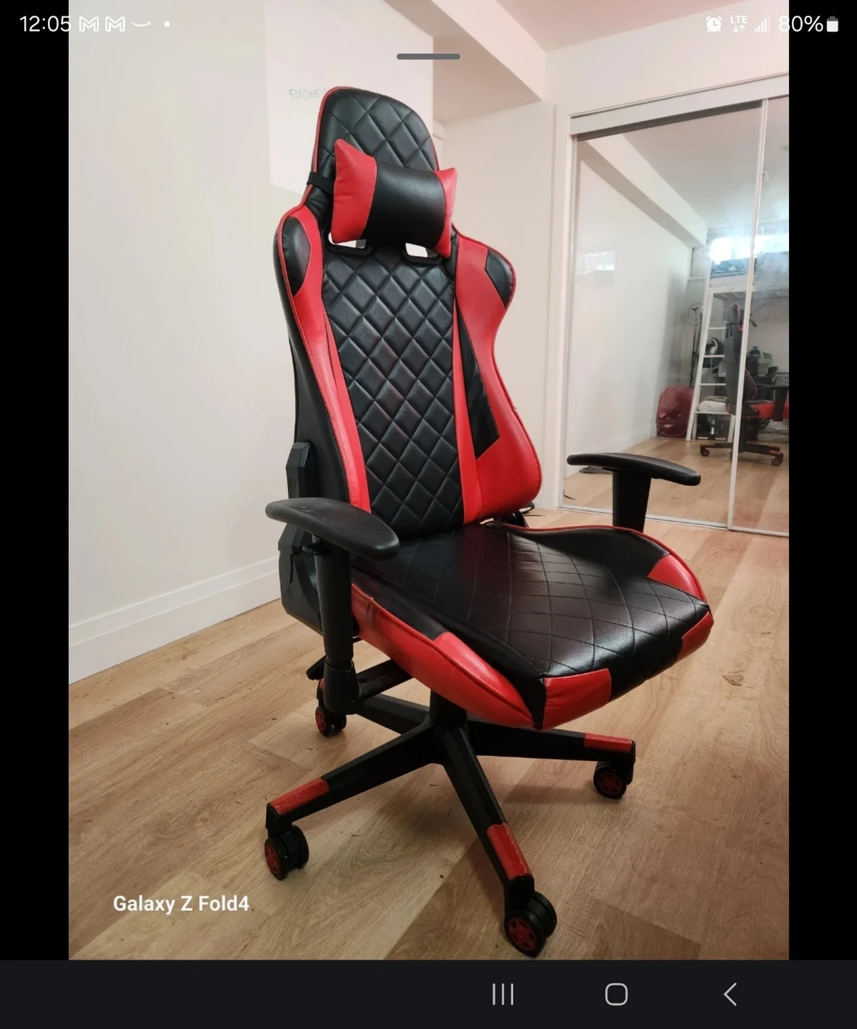 Red and Black Gaming Chair with Lumbar and Head Rest Pillow
