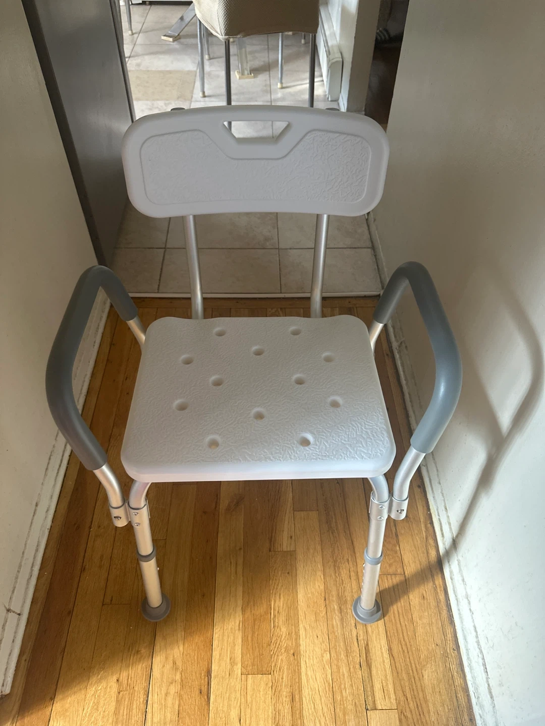Selling an adjustable bath or shower chair with a backrest. It's in great condition and perfect for anyone needing a little extra support in the bathroom