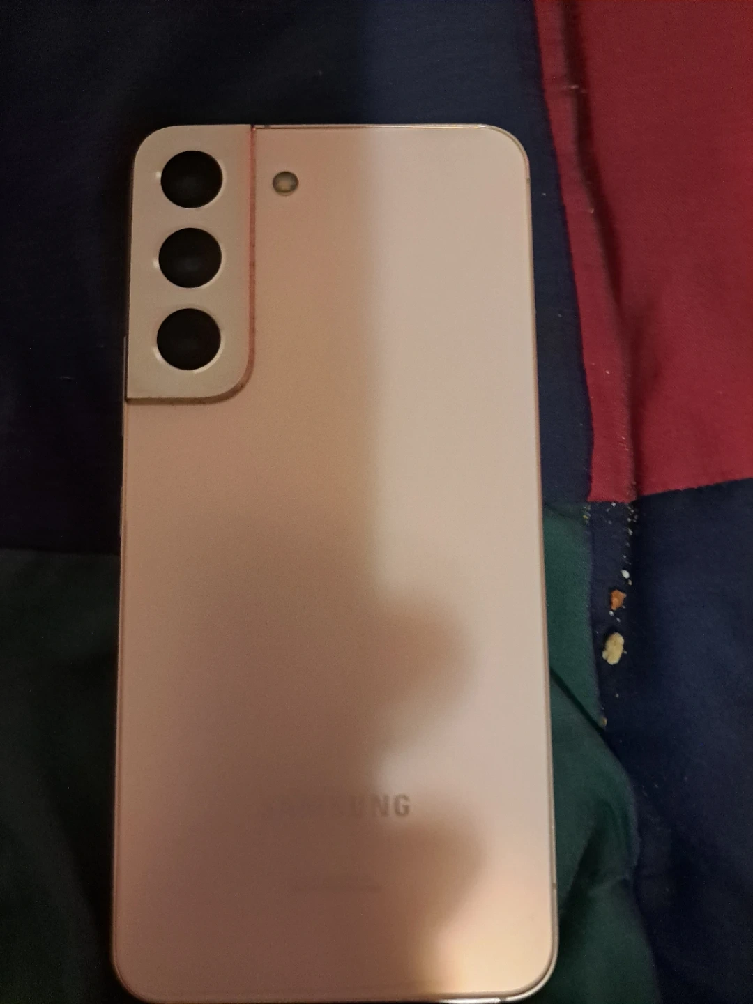 Samsung Galaxy S22 smartphone. This device has a triple camera system on the back. It's a sleek, modern phone.