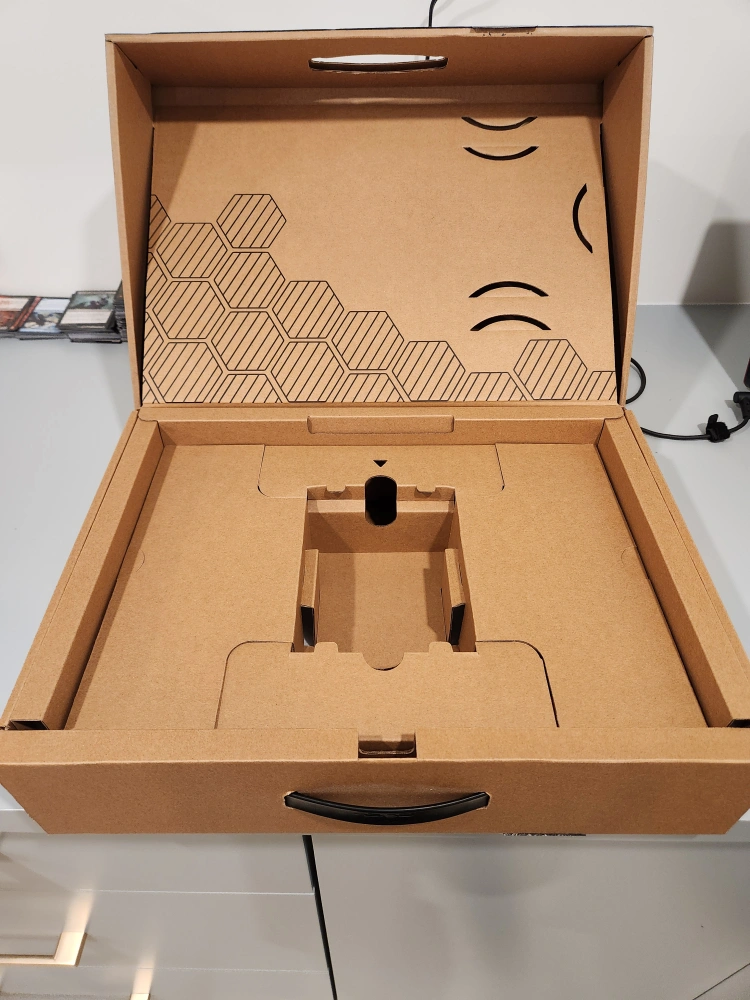 Gaming laptop, black. Includes original box, power adapter, and user manual.
