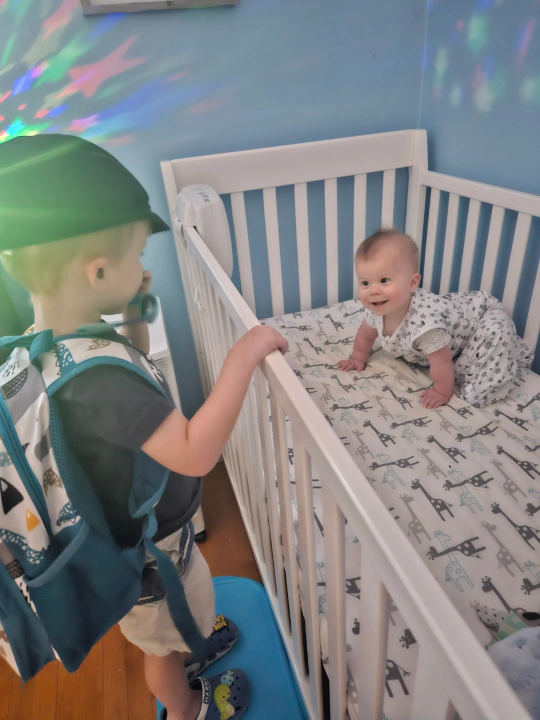 This set comes with a crib, mattress protector fitted crib sheets this one featuring a cute animal pattern. Made from soft, breathable fabric for your baby's comfort. Perfect for a nursery!
