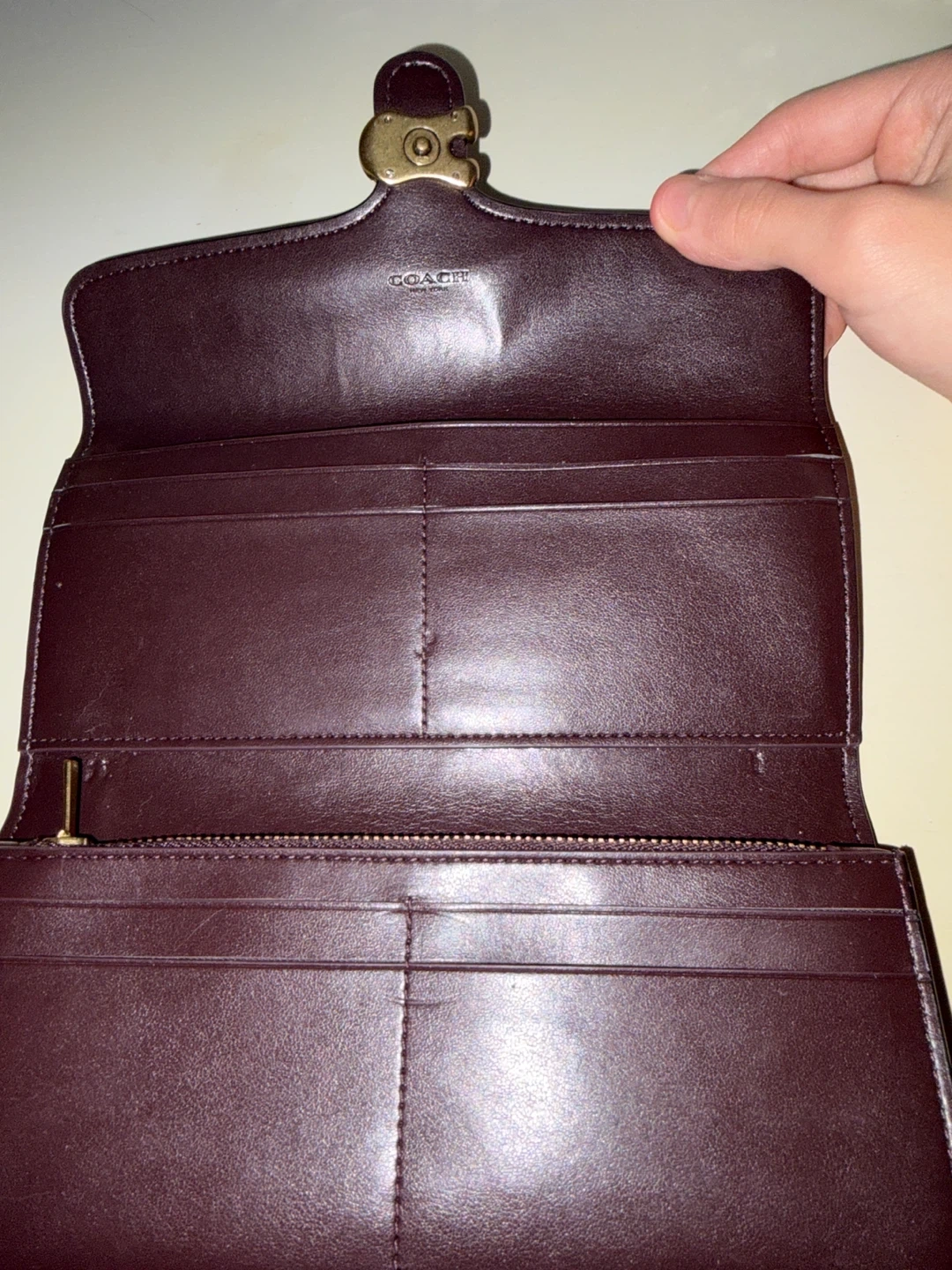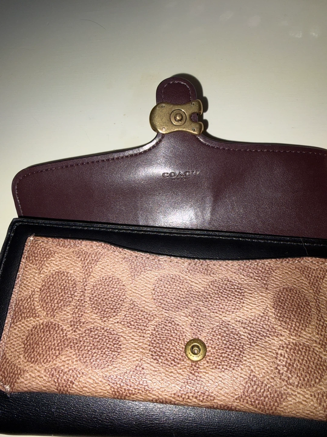 Coach wallet used lightly. Works perfectly fine. No discolouration or tear. Symmetrical coach symbol. E transfer preferred. Perfect for organizing cards and putting cash.