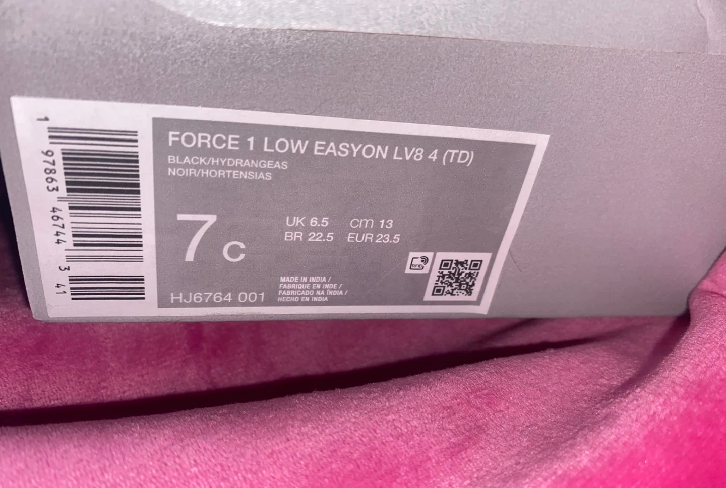 Nike Force 1 Low EasyOn LV8 4 toddler shoes in black with hyper pink accents. Includes original box.