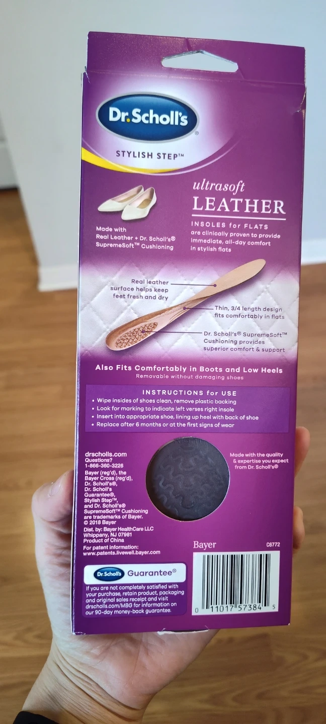 These Dr. Scholl's insoles are made with ultrasoft leather and feature real leather surface that keeps feet fresh and dry. They provide immediate, all-day comfort in flats and fit comfortably in boots and low heels. Includes Dr. Scholl's SupremeSoft cushioning for superior comfort and support.